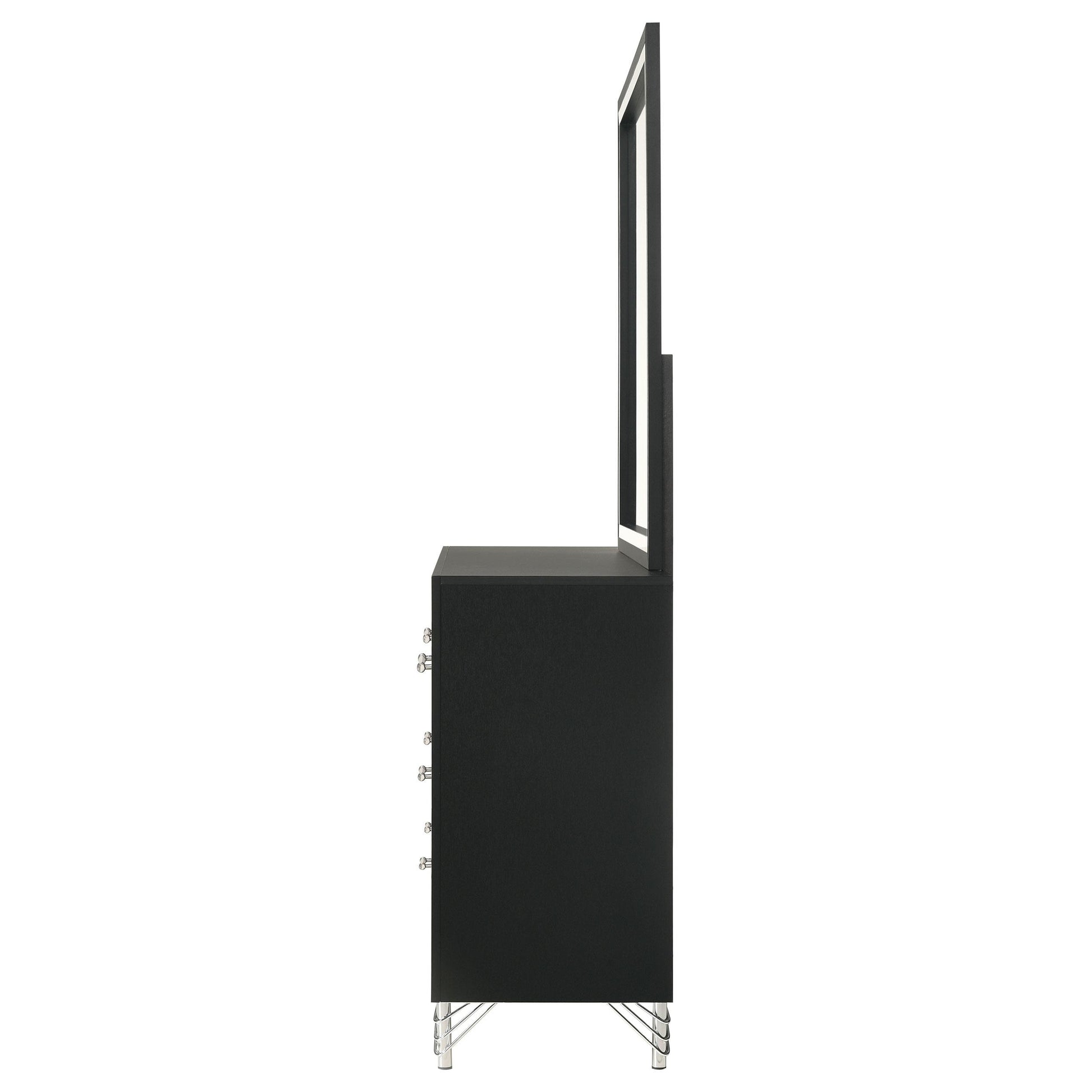 Lucia 6-drawer Dresser and Mirror Black is a versatile storage solution for modern bedrooms. This coordinated dresser and mirror set is perfect for anyone who wants organized clothing storage with a clean, contemporary look. The black finish and streamlined silhouette blend easily with most decors, making it a smart, long-term addition to your home.