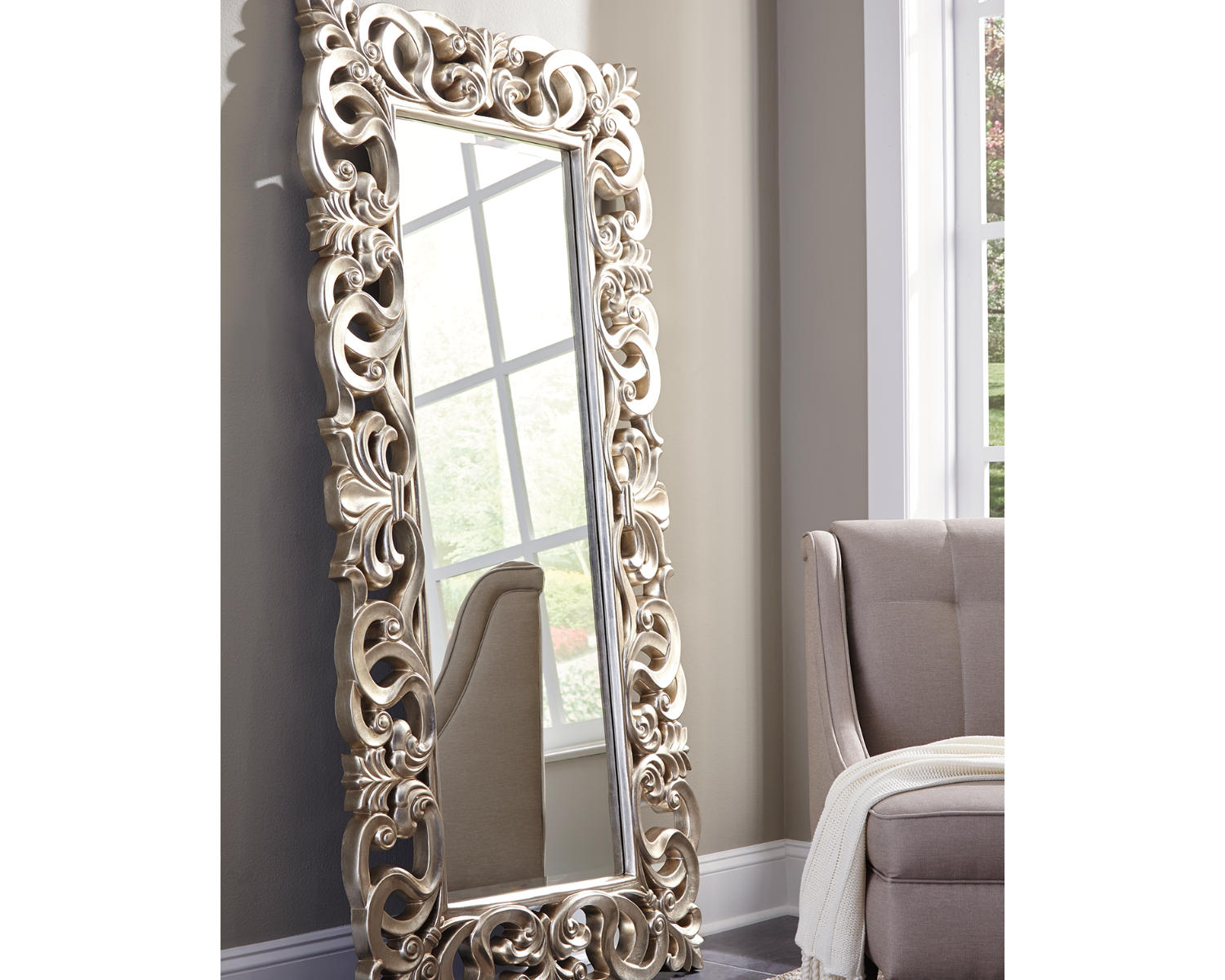 The Lucia Floor Mirror in antique silver finish adds a timeless reflection piece to any room. Designed for bedrooms, entryways, or living spaces, it blends function with subtle vintage charm to brighten and complete your decor.