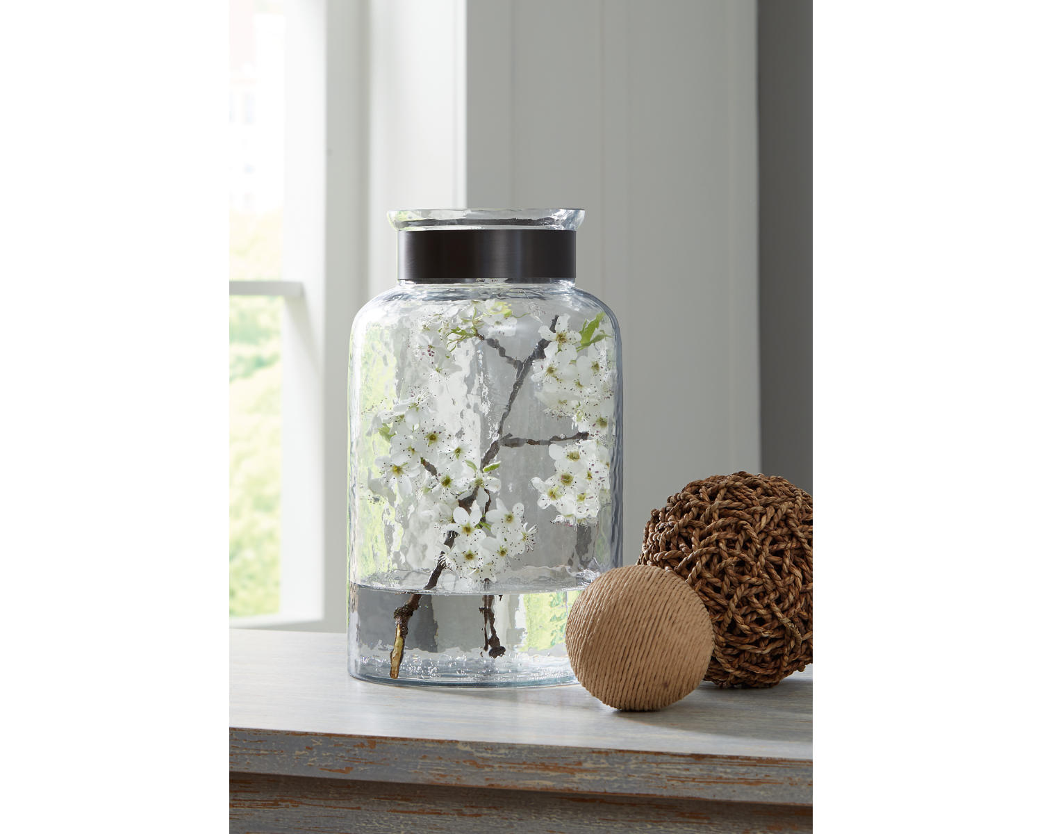 Meet the Lukasvale Vase — a clear glass vase with pewter finish accents designed for modern homes and thoughtful gifts. It’s ideal for showcasing fresh blooms or standing on its own as a chic decor piece. The timeless silhouette and subtle metallic touch blend seamlessly with a variety of interiors.