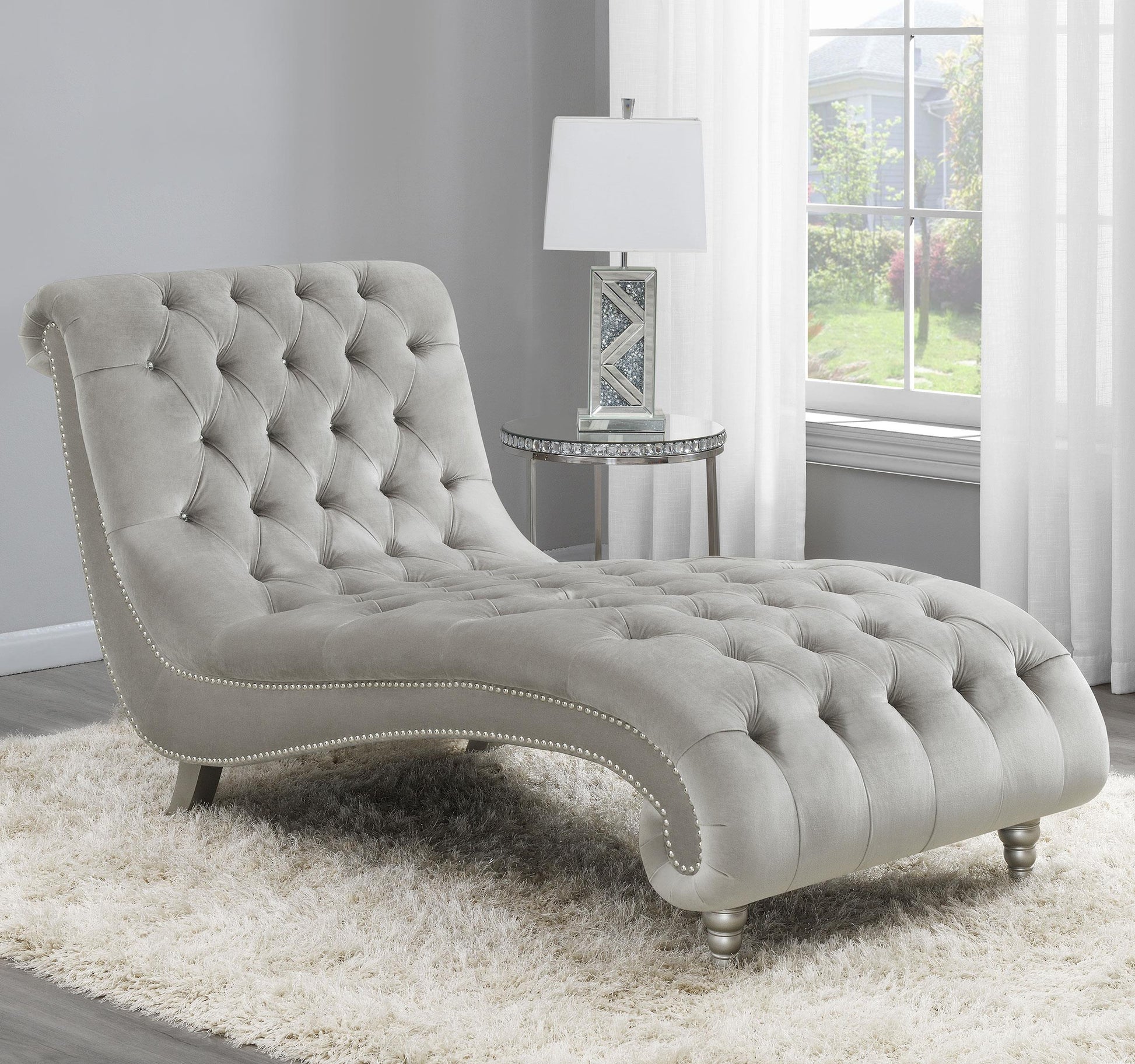 Lydia Velvet Upholstered Tufted Chaise Grey
