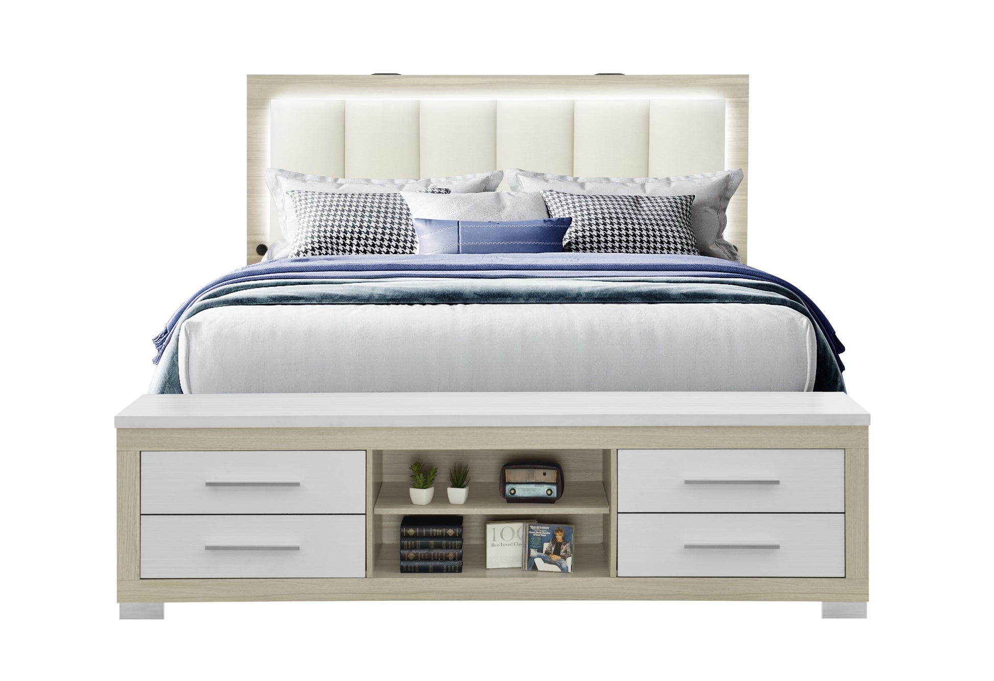 MADISON/EMMA Natural/White King Bed, Dresser, Mirror and Chest