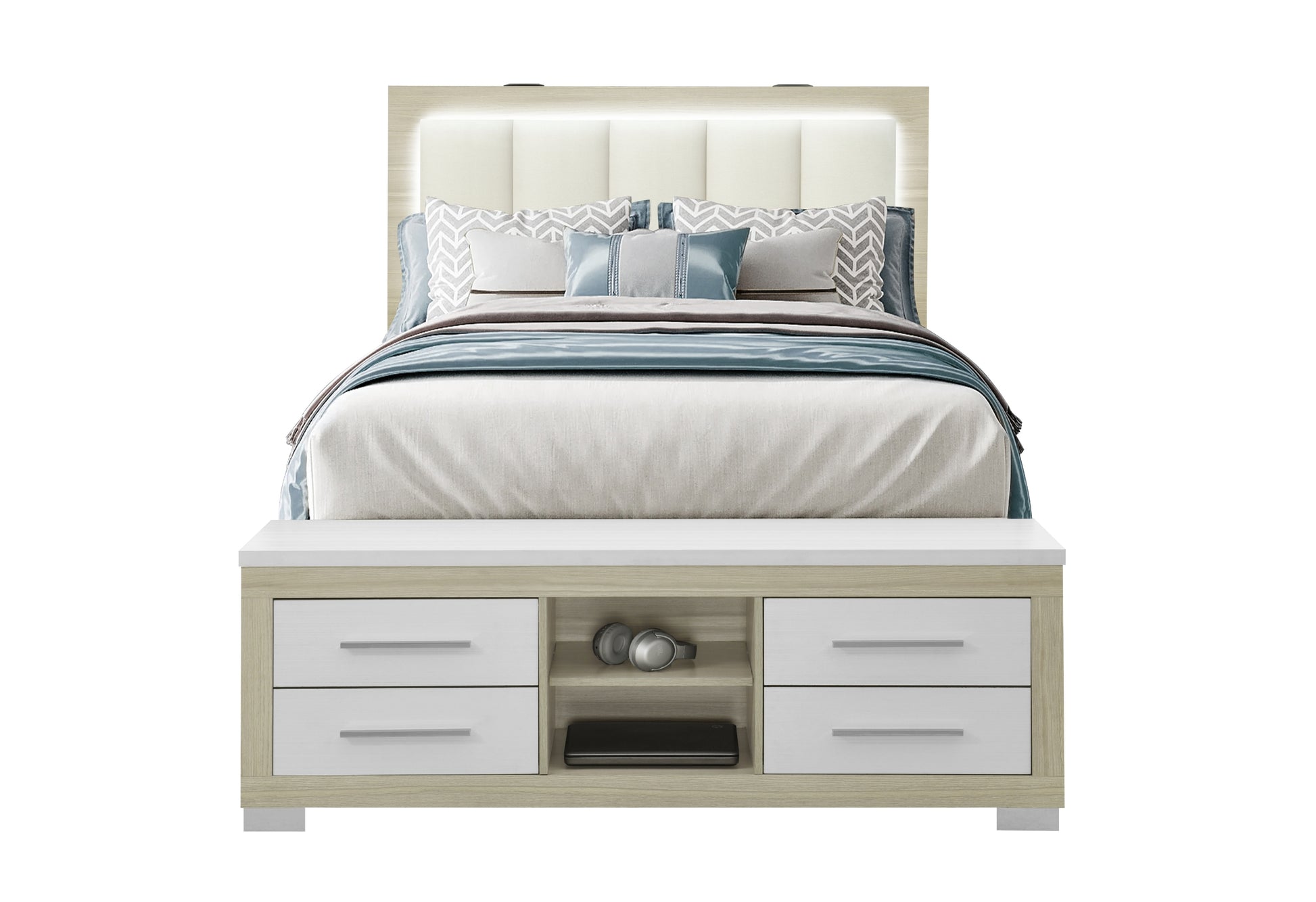 MADISON/EMMA Natural White Queen Bedroom Set — Bed, Dresser, Mirror & Chest