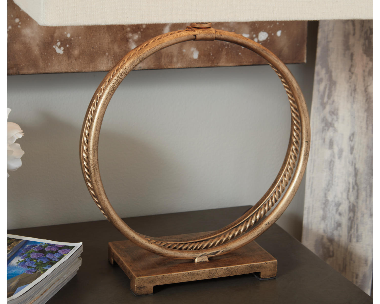 - Material: Metal construction with an antique gold finish