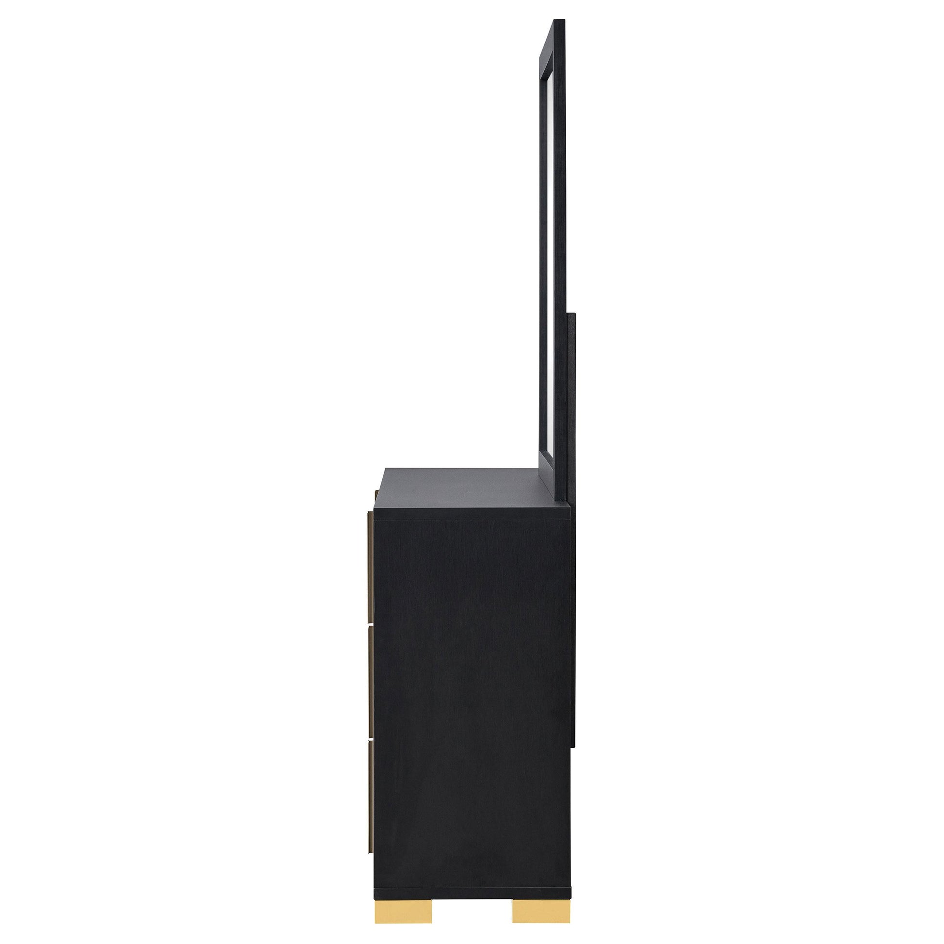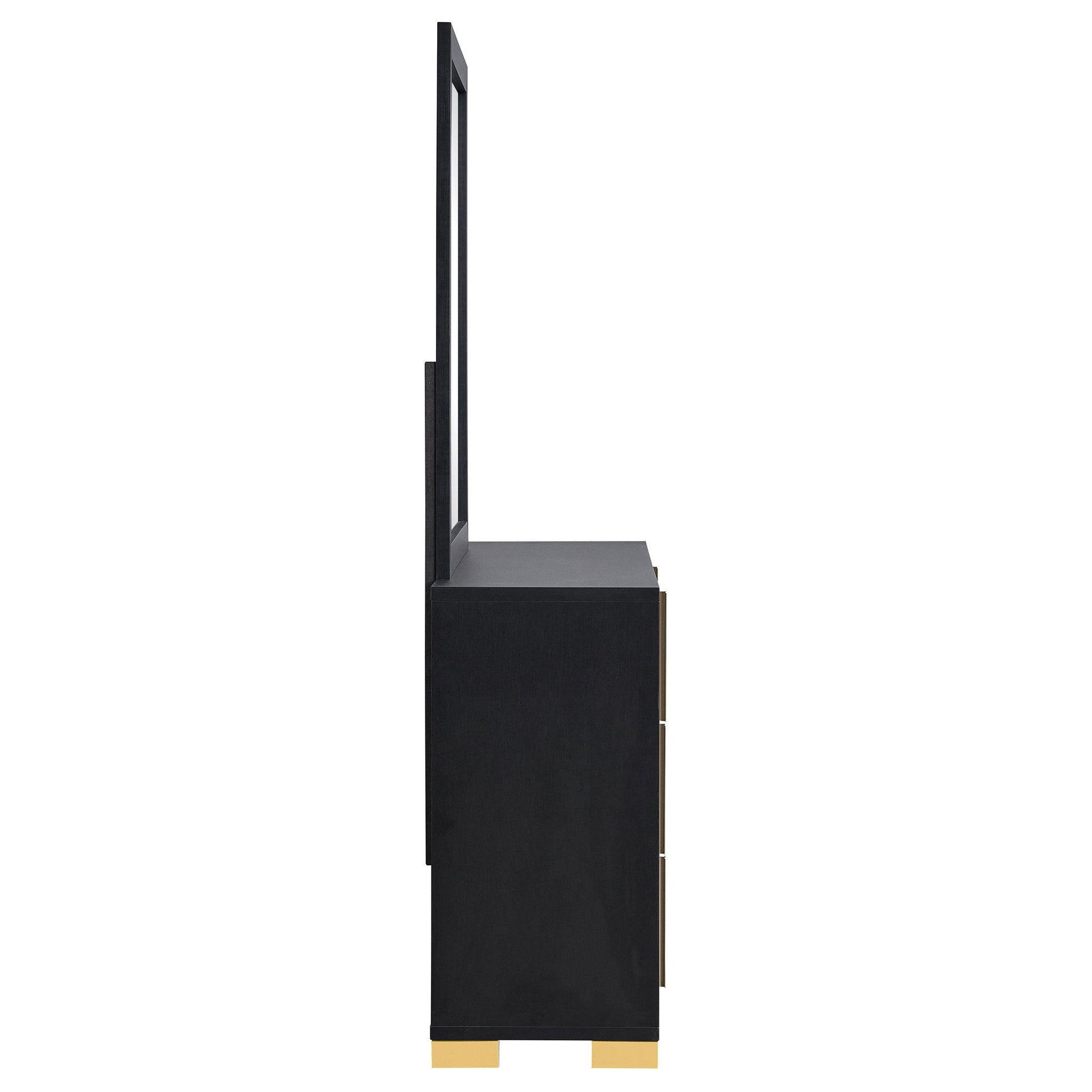 The Marceline 6-drawer Dresser with Mirror Black is a versatile storage piece crafted for modern bedrooms. It offers ample drawer space and an integrated mirror for convenient daily use. Designed for anyone seeking tidy organization with a sleek, understated look.