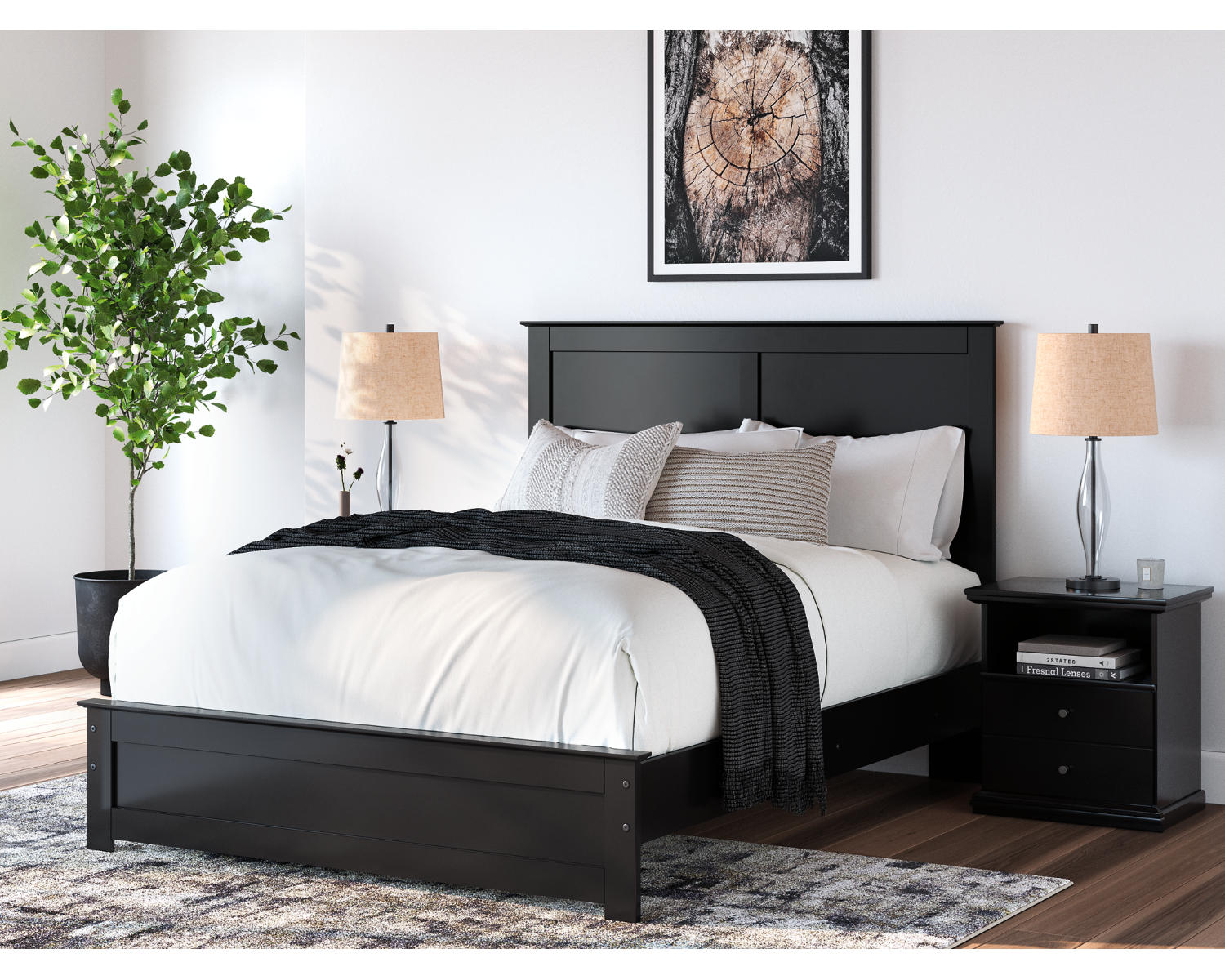 Meet the Maribel Queen Panel Bed in Black — a sleek, modern bed frame designed for contemporary bedrooms. This queen-size bed delivers a clean silhouette that pairs with a range of decor styles, from minimalist to classic. Built for everyday use, it offers reliable support and timeless appeal.