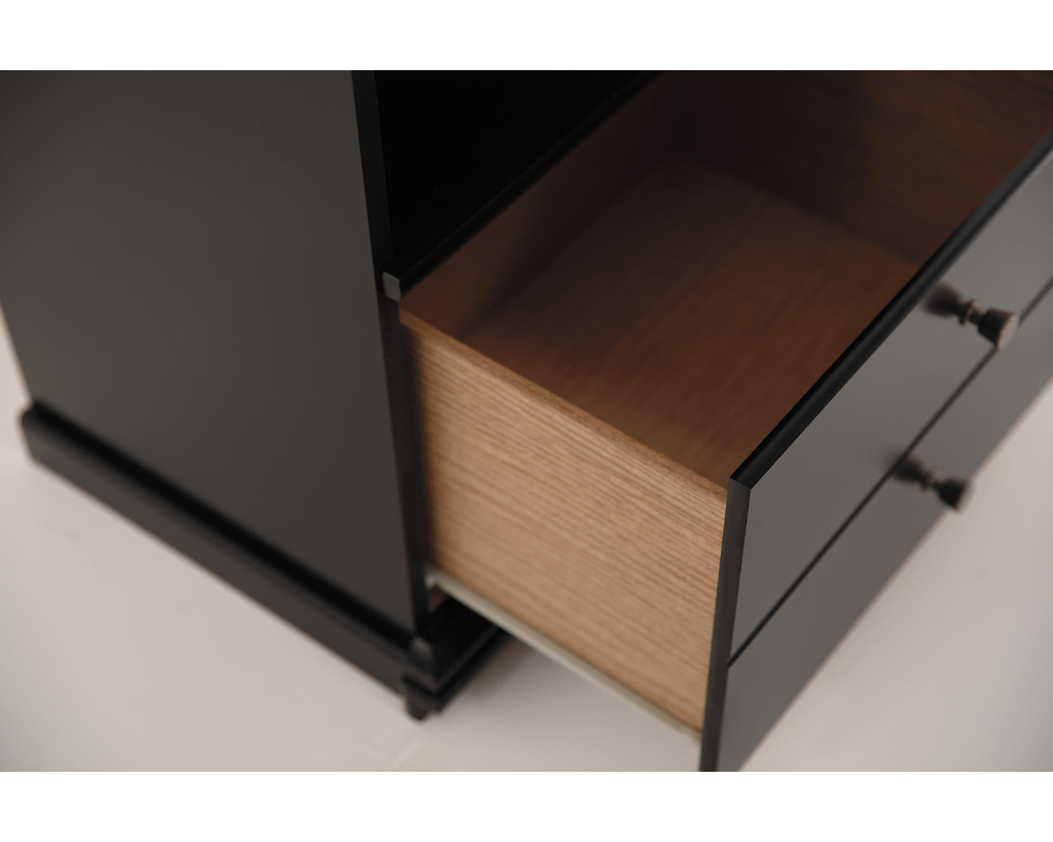 - Nightstand with a convenient surface and drawer for essentials within reach.