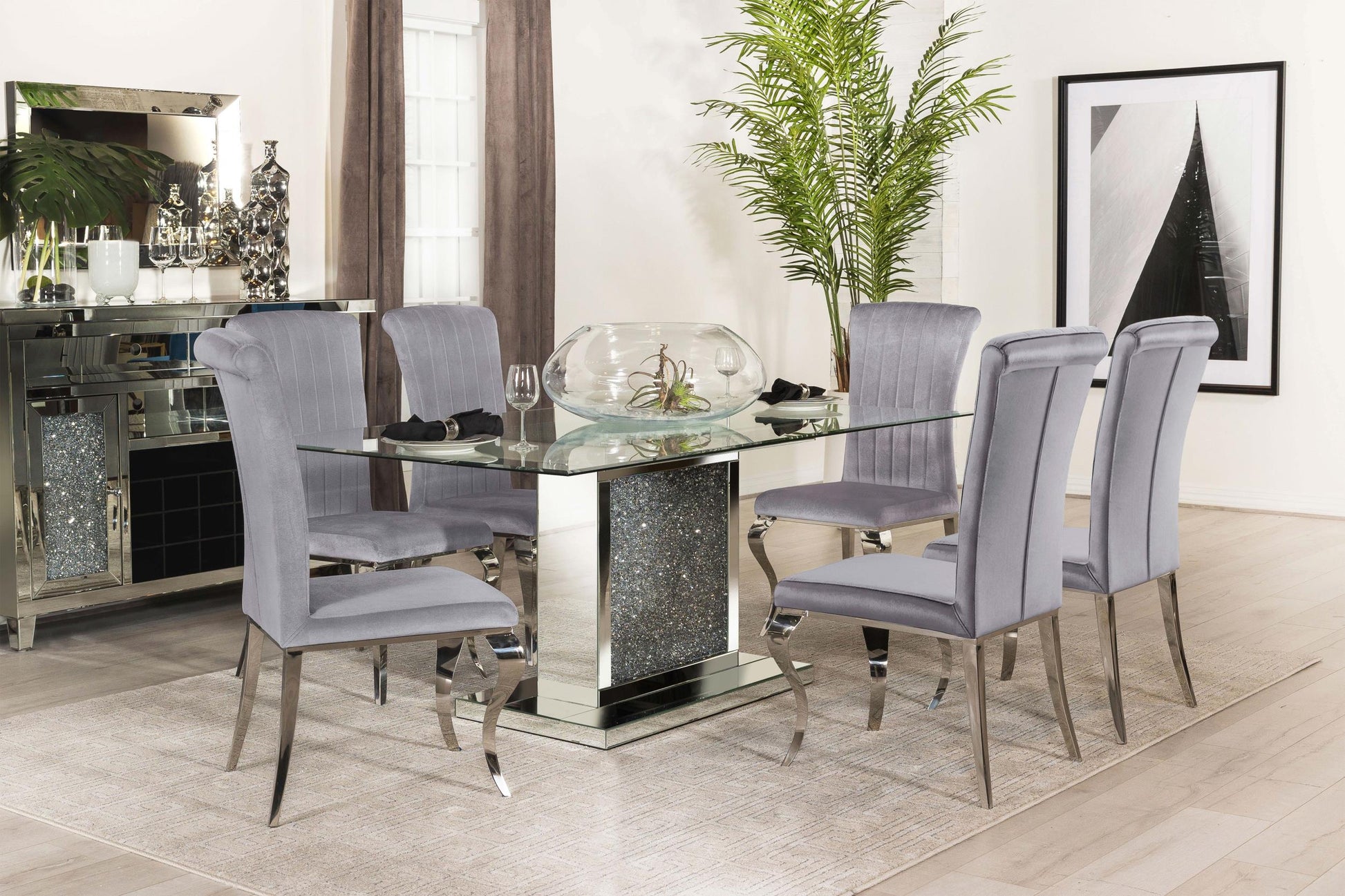 Marilyn Rectangular 72-Inch Glass Top Dining Table Silver