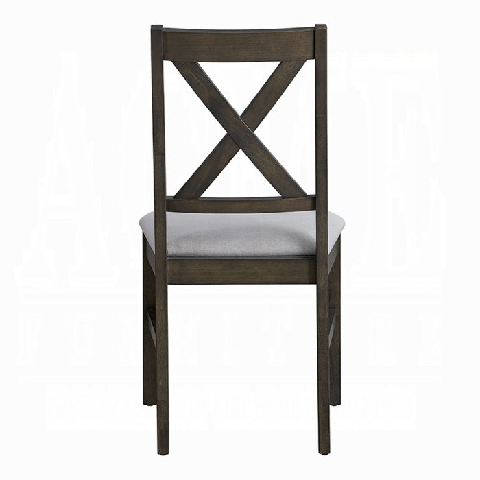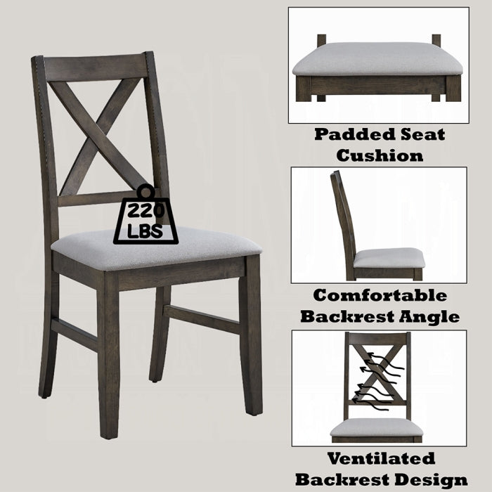 The Marit Side Chair Set-2 brings modern elegance to dining spaces and works equally well in rustic interiors. The set features a stylish gray finish and an eye-catching X-shaped leg design that adds stability and flair. The accompanying chairs and bench come with padded seat cushions for comfort during extended gatherings.