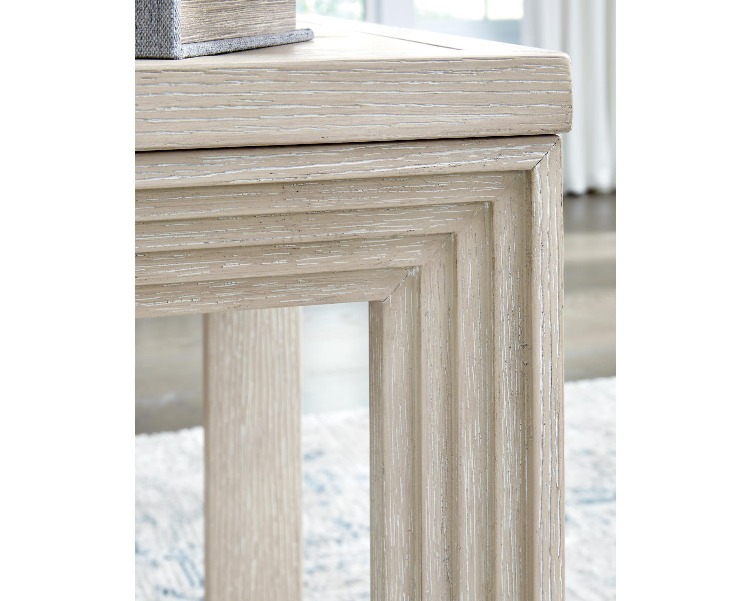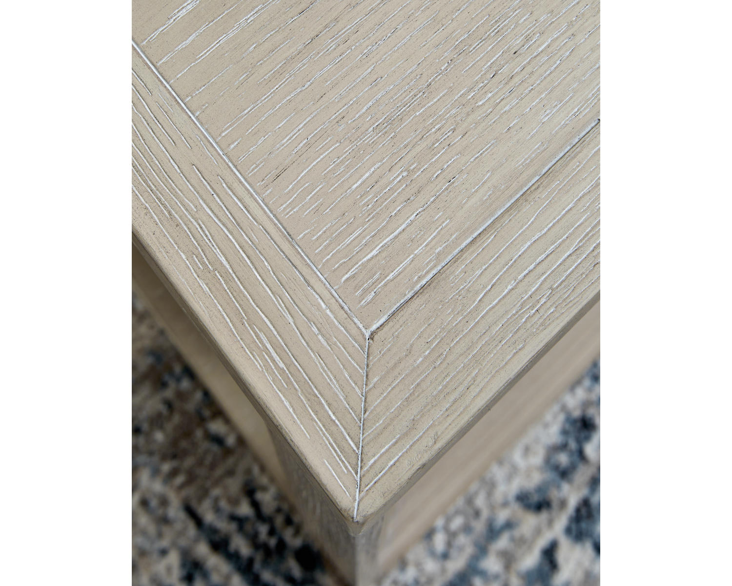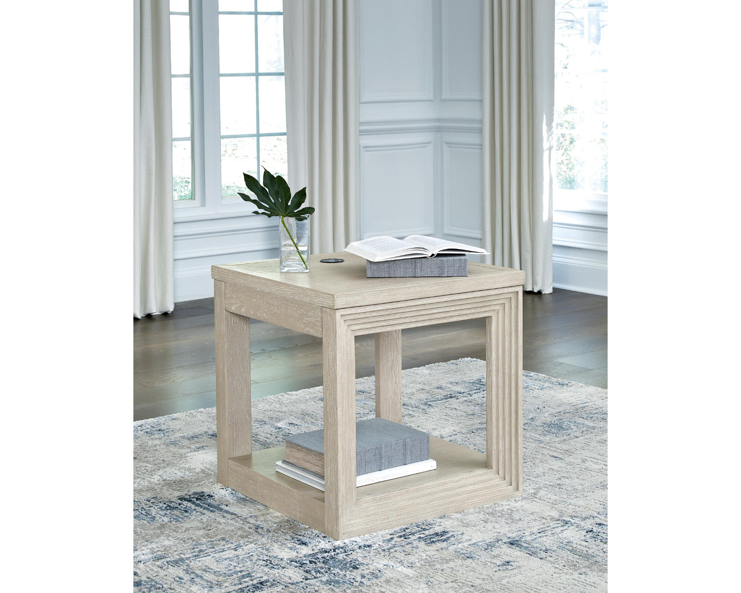 The Marxhart End Table is a compact square end table finished in bisque, designed to fit easily beside sofas, chairs, or beds. Its neutral tone and clean lines make it a versatile addition to any room, from modern to traditional décors. This sturdy, unobtrusive piece blends seamlessly into everyday living spaces while providing reliable surface space for essentials.