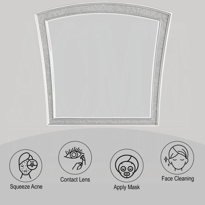 The Maverick Mirror combines durable construction with enduring style. A solid wood and composite wood frame provides stability and resistance to warping, while the mirrored surface offers clear, distortion-free reflection. The platinum finish and rhinestone detailing deliver a refined, premium look that remains relevant as your space evolves. Offered at a competitive price point, this mirror delivers strong value for a high-end aesthetic, making it a smart centerpiece for homes that value quality and timeless design.