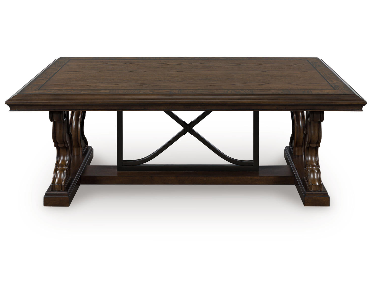 The Maylee Coffee Table is a rectangular cocktail table finished in dark brown, designed to anchor living rooms with style and practicality. It suits everyday use in homes that value clean lines and timeless appeal. This table blends versatile function with a refined silhouette to elevate any seating area.