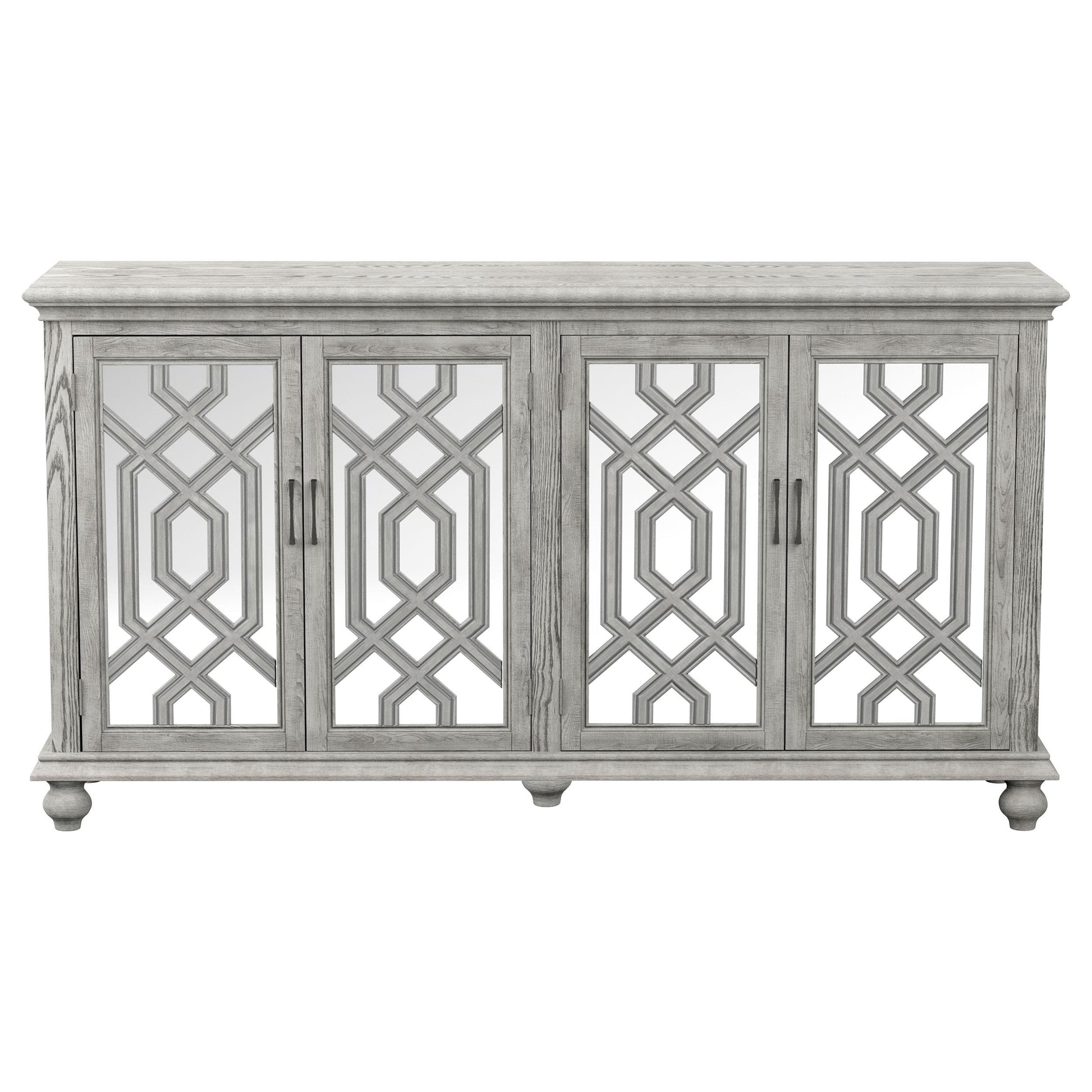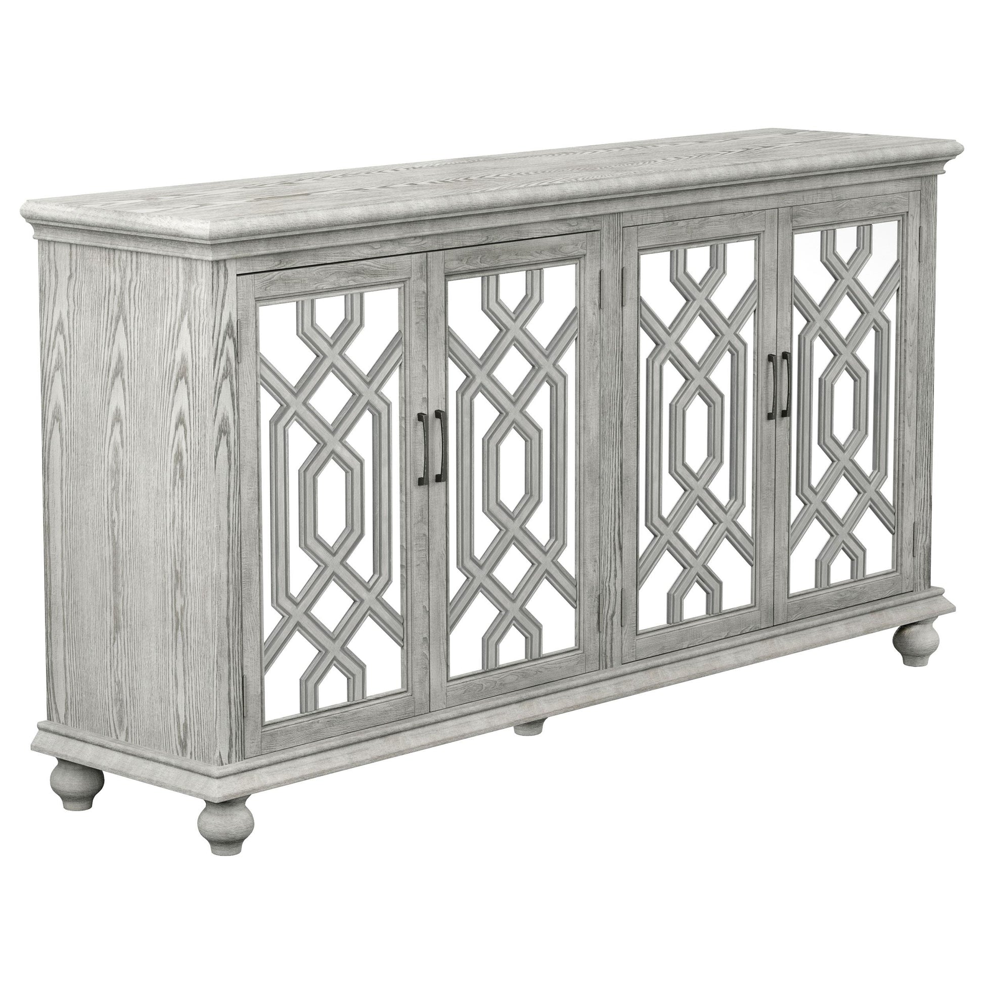 Melanie 4-door Wood Trellis Accent Cabinet Distressed White