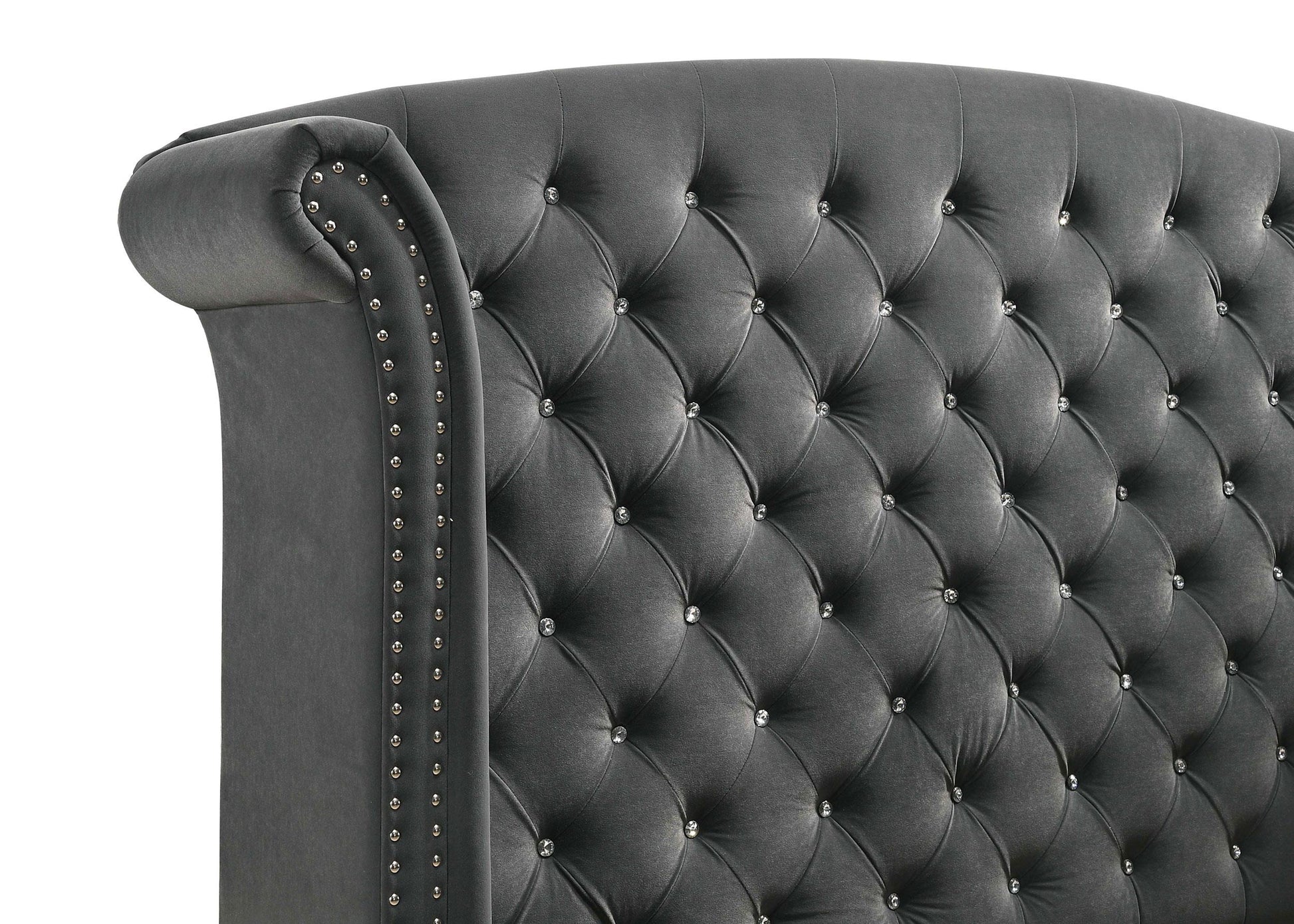 Melody Upholstered California King Wingback Bed Grey offers a stylish centerpiece for modern bedrooms. This upholstered bed is ideal for those who appreciate a soft, inviting look with a dramatic headboard. In a versatile grey finish, it blends easily with a range of decor styles while delivering comfort and presence.