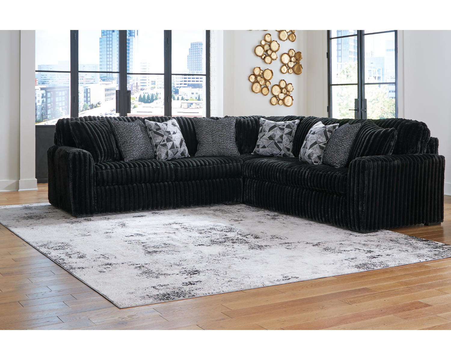 Meet the Midnight-Madness 3-Piece Sectional in Onyx—an adaptable, modern seating solution designed for living rooms that crave clean lines and flexible arrangement. This three-piece configuration lets you tailor your space for lounging, entertaining, or family time. With a deep, inviting silhouette in a timeless black Onyx finish, it fits a wide range of décors.
