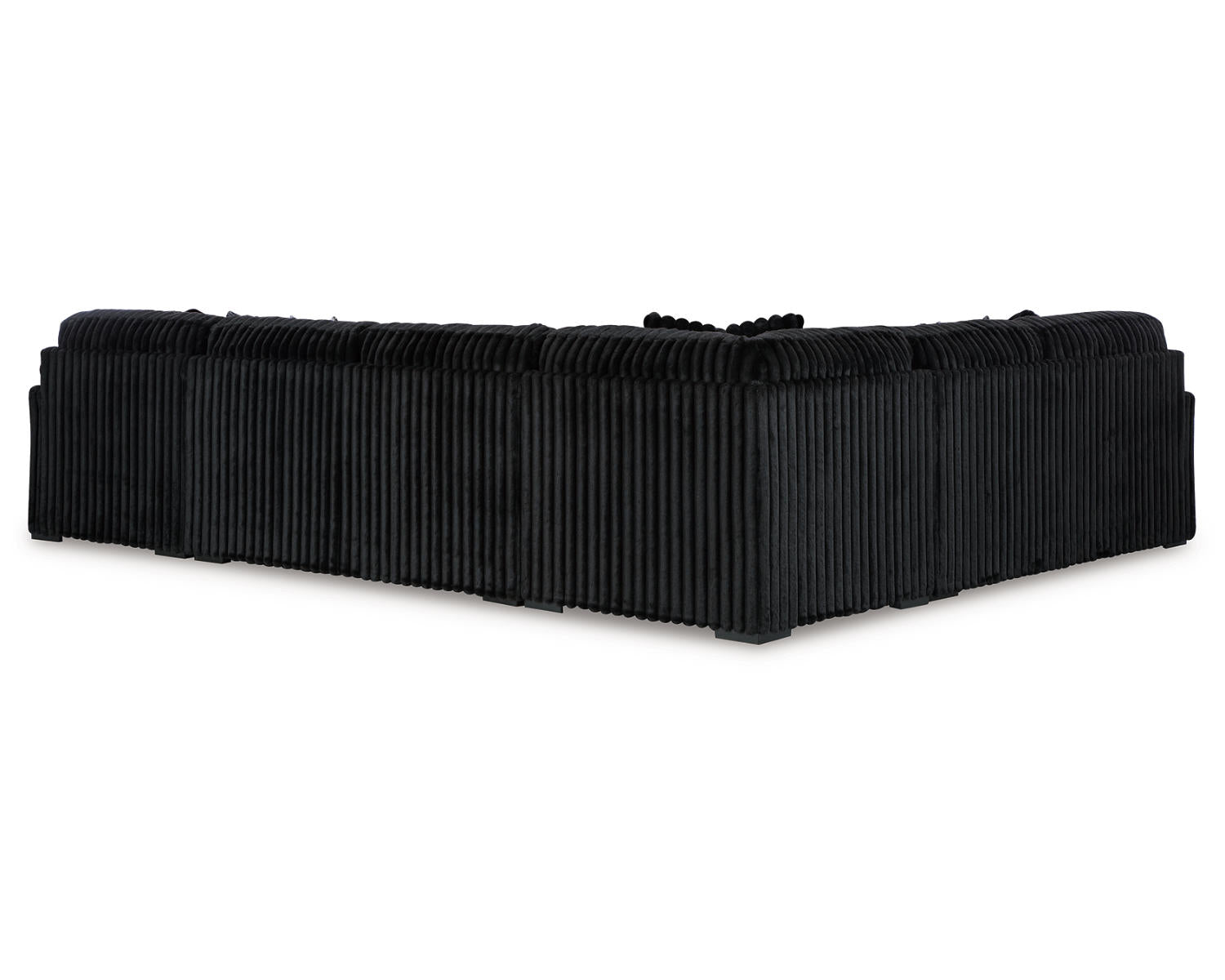 The Midnight-Madness 4-Piece Sectional with Chaise in Onyx offers flexible seating for modern living spaces. This modular sofa is designed for families, entertainers, and anyone who loves adaptable comfort with a contemporary style.