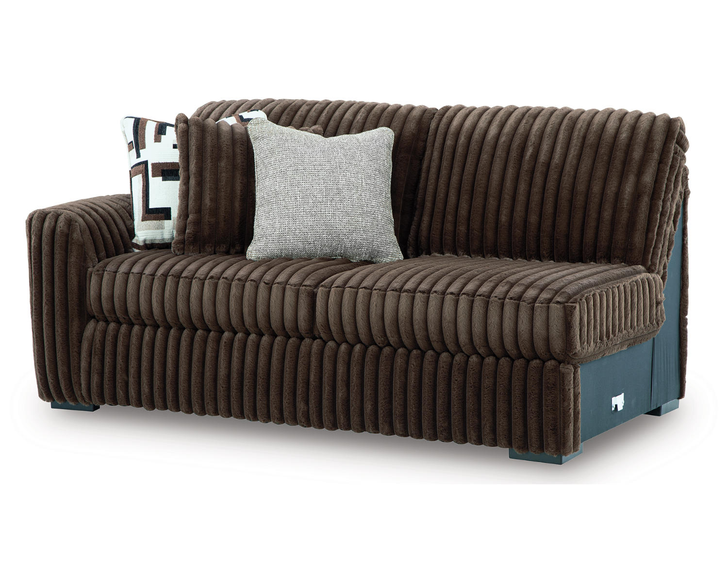 The Midnight-Madness Left-Arm Facing Sofa is a versatile seating piece designed for modern living spaces. This LAF sofa in chocolate upholstery brings a rich, welcoming color to your room and pairs well with a variety of decors. Perfect for everyday lounging, movie nights, and social gatherings, it combines comfort with a contemporary silhouette.