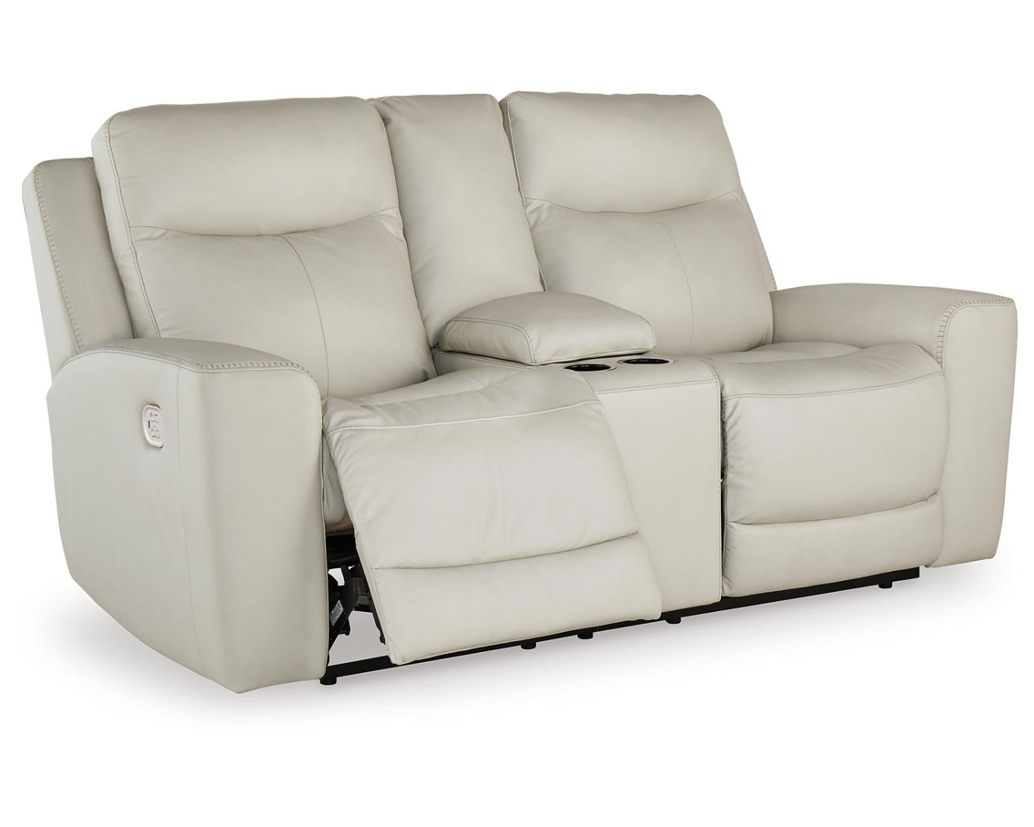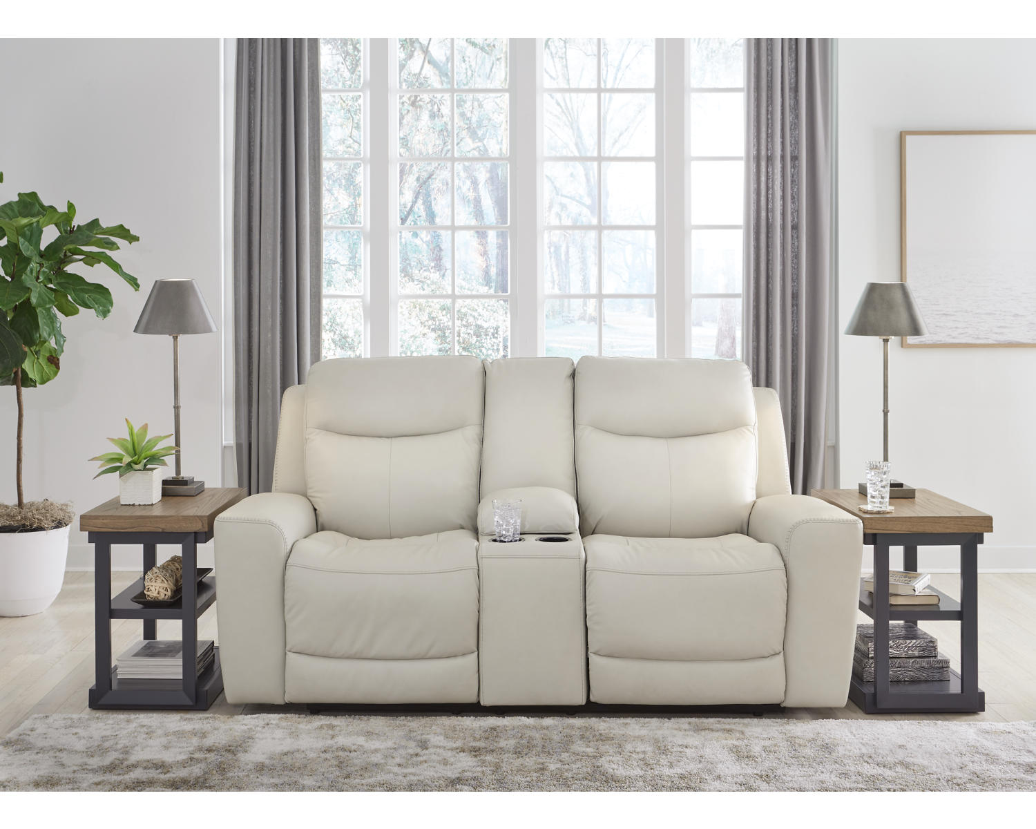 Introducing the Mindanao Power Reclining Loveseat with Console in Coconut — a compact two-seat solution crafted for everyday comfort. This piece pairs a smooth power recline with a built-in console and adjustable headrests, delivering relaxed lounging for you and a guest.