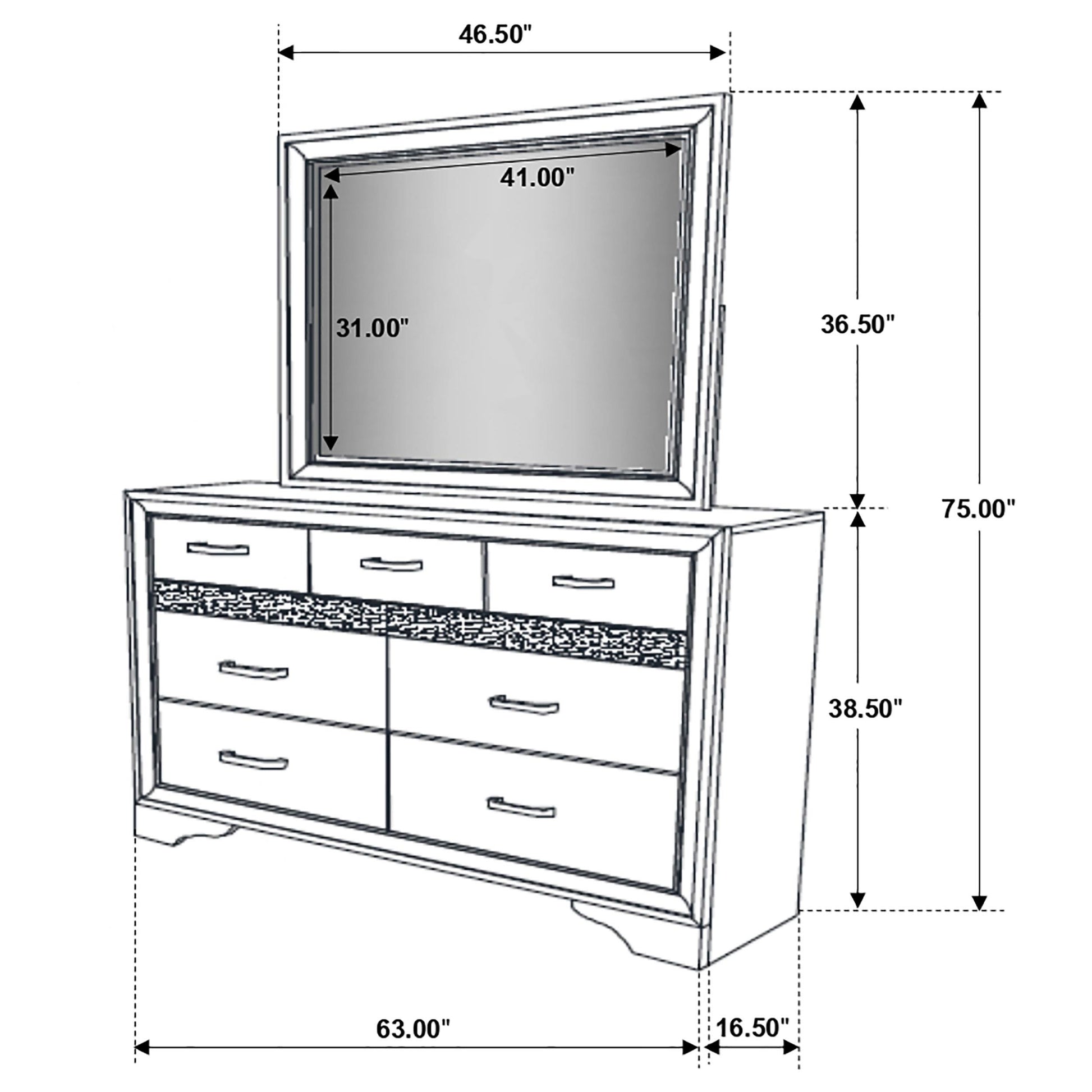 Meet the Miranda 7-drawer Dresser with Mirror in Black — a practical storage centerpiece designed for bedrooms that need organized surfaces and a quick grooming check. This piece combines generous drawer space with a built-in mirror for everyday convenience, all in a sleek black finish that suits contemporary and transitional styles.