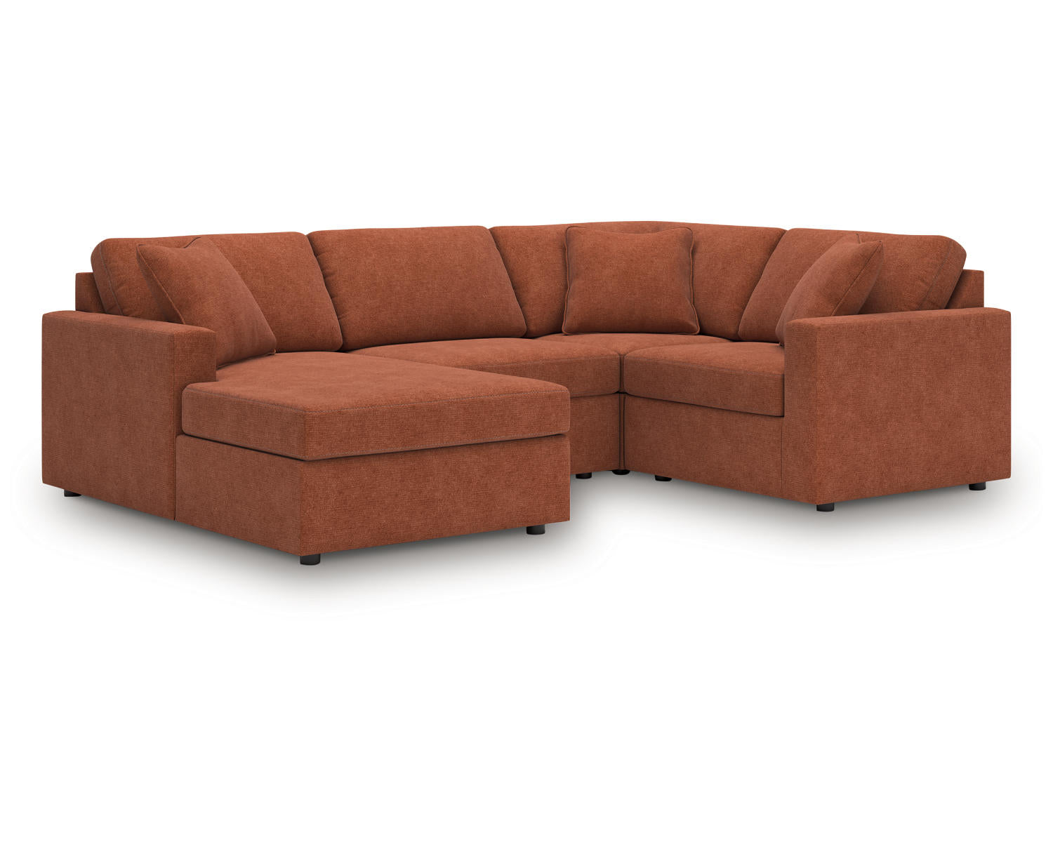 Meet the Modmax 4-Piece Sectional with Chaise in Spice — a modular seating solution designed to adapt to your space and lifestyle. Perfect for families and entertaining, this set blends comfort with flexible arrangement. The spice upholstery adds a warm, contemporary touch to any living room.