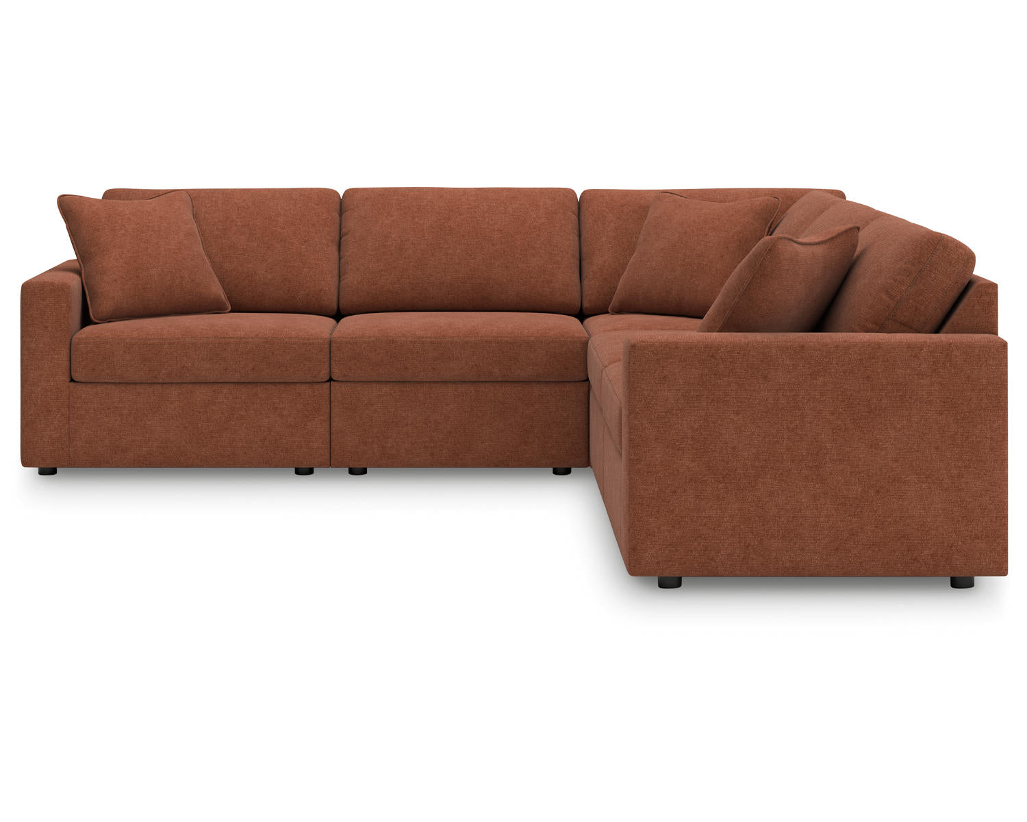 Introducing the Modmax 5-Piece Sectional in Spice—a modular seating solution designed for modern living rooms, family spaces, and entertainment areas. This adaptable sofa configuration is ideal for homes that value flexibility, comfort, and a warm focal point. Its clean lines and the spice-toned upholstery bring a welcoming, timeless style to a wide range of decors.