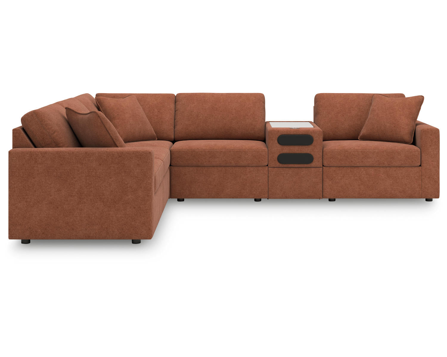 Meet the Modmax 6-Piece Sectional with Audio Console in Spice—a modular seating solution designed for versatile living spaces. This sectional is ideal for families, movie nights, and entertaining, offering flexible arrangement options and built-in audio management for a clean, clutter-free setup.