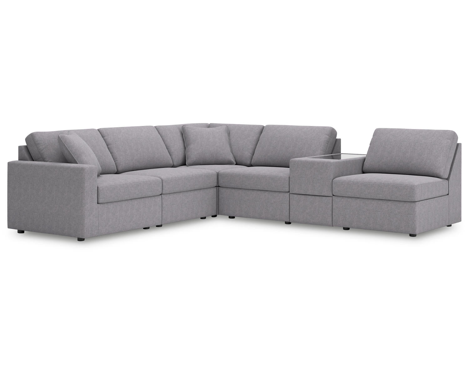 Introducing the Modmax 6-Piece Sectional — a versatile, granite-toned seating solution designed for modern living spaces. This modular sectional includes a convenient storage console, giving you a practical spot to keep remotes, magazines, and other essentials within reach. Ideal for family rooms, entertainment areas, or open-plan spaces, it blends comfort with flexible configuration.