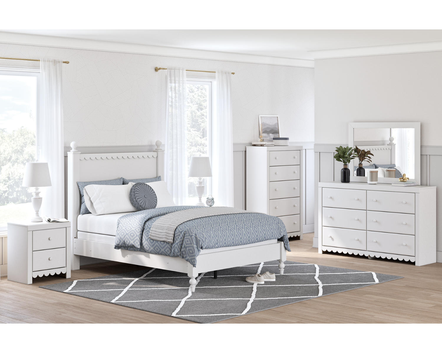 The Mollviney Full Panel Bed in White offers a clean, timeless centerpiece for any bedroom. Designed for full-size mattresses, it pairs easily with a wide range of decor—from modern to traditional. With its simple silhouette and sturdy construction, it delivers everyday comfort and long-lasting value.