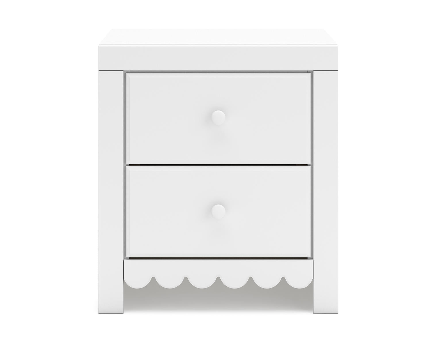 Meet the Mollviney Nightstand, a crisp white two-drawer bedside companion designed for everyday use. It adds practical storage and a calm, contemporary look to any bedroom, pairing easily with a variety of décors.