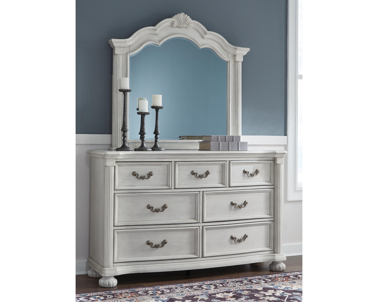 - Antique white finish for a refined, timeless look