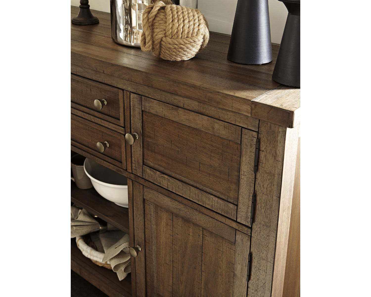 Introducing the Moriville Dining Server — a versatile storage piece for the dining room. Designed for households that value organized serving space, it combines a refined grayish brown finish with practical storage and display options.
