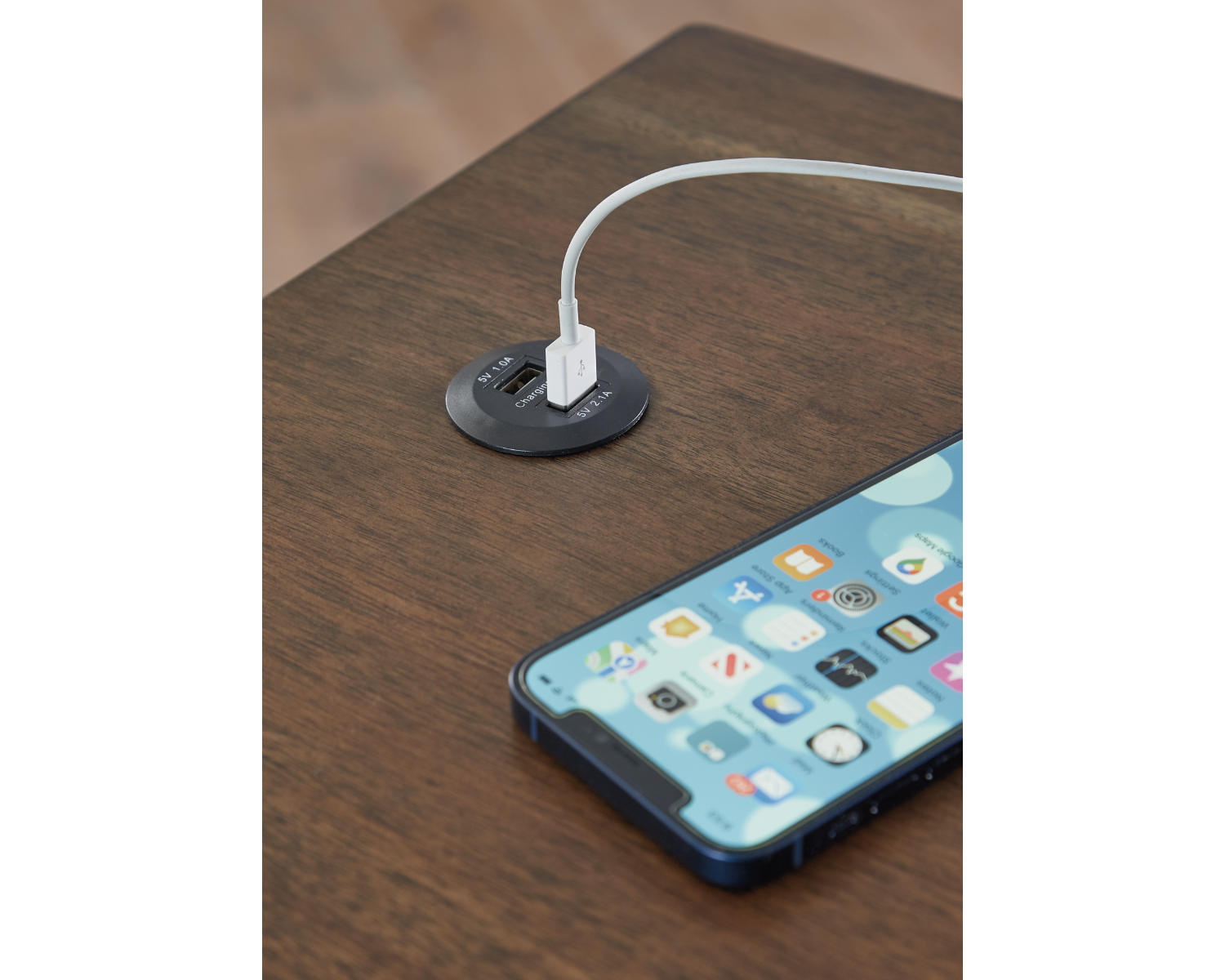 - Color and finish: Grayish brown finish that pairs with a variety of upholstery and wood tones.