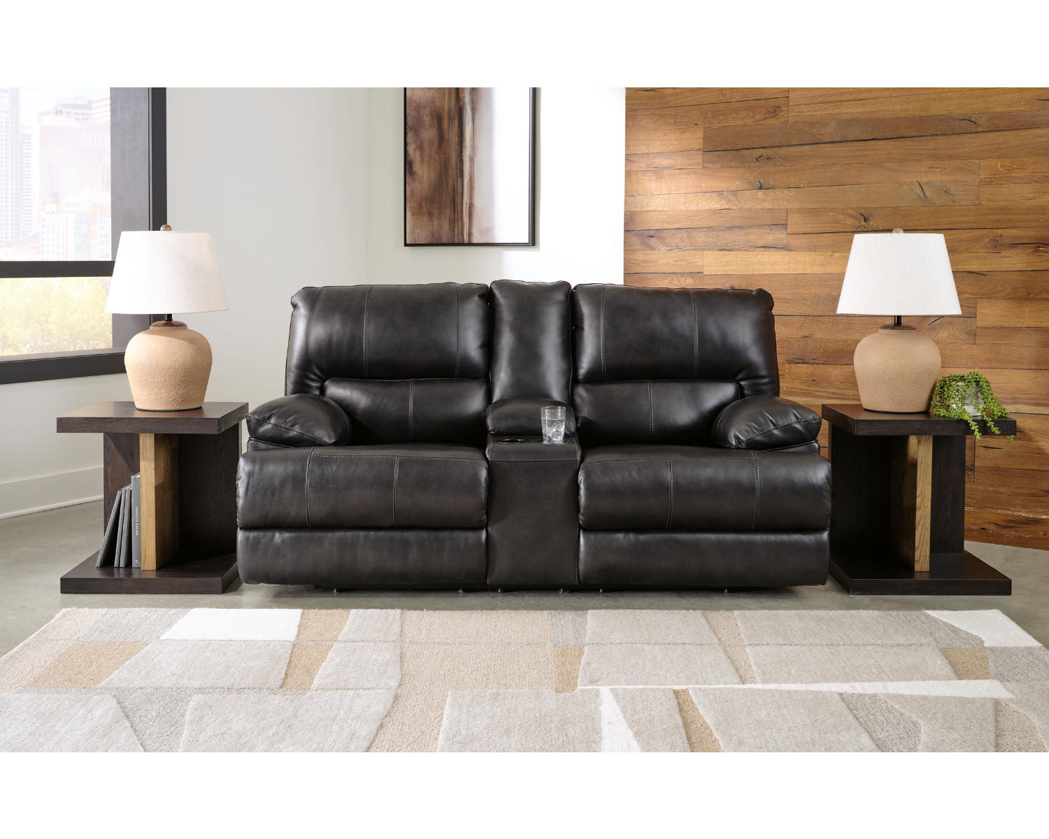 Introducing the Mountainous Power Reclining Loveseat — a versatile, space-conscious seating solution designed for everyday comfort. This Eclipse version combines smooth power reclining, a built-in console, and an adjustable headrest to adapt to your preferred lounging position. Perfect for movie nights, game days, and relaxed family time.