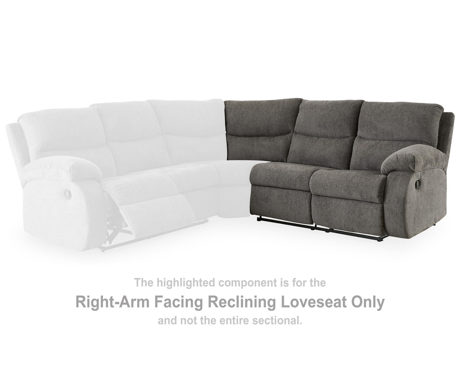 - Right-arm facing configuration creates a contemporary, asymmetrical layout that suits sectional setups.
