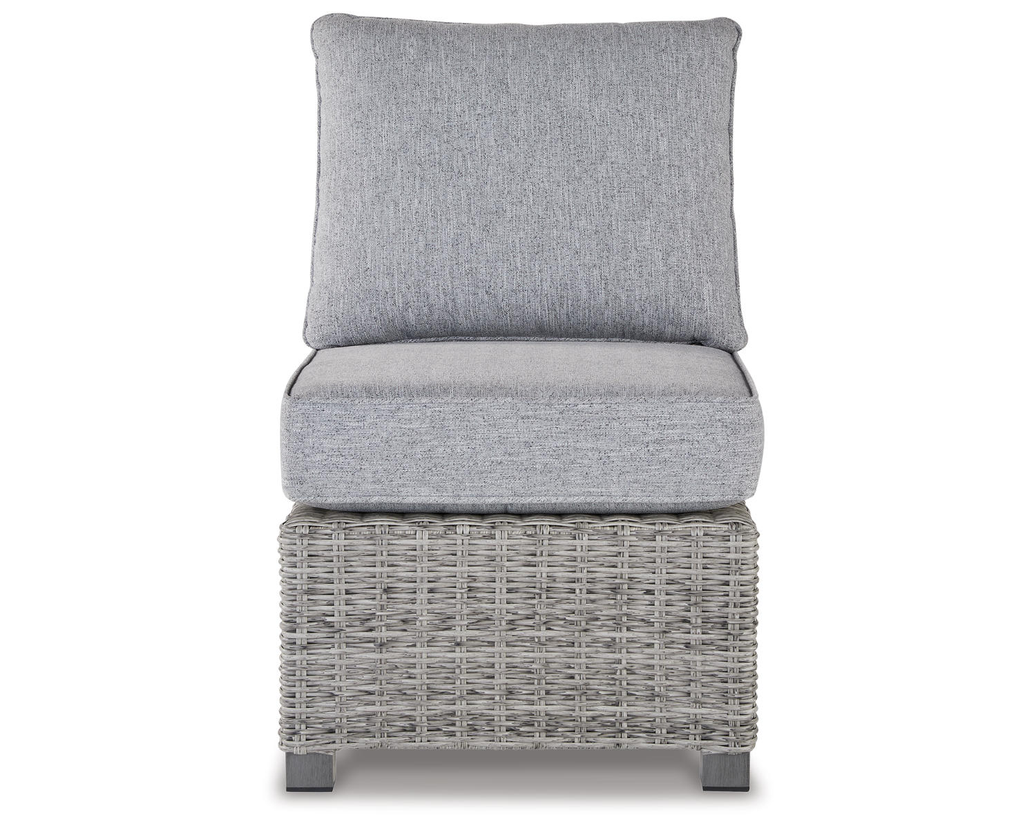 Experience coastal comfort with the Naples Beach Armless Chair with Cushion. Ideal for small living spaces, sunrooms, or covered outdoor areas, it blends relaxed style with everyday practicality. The light gray cushion and clean lines complement a wide range of décor.
