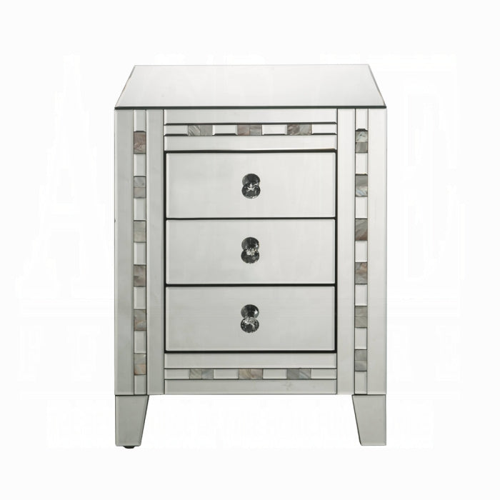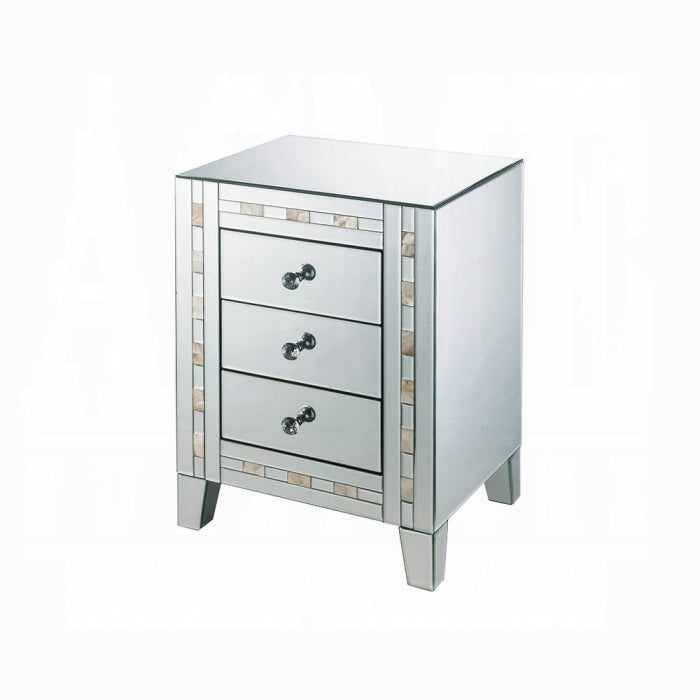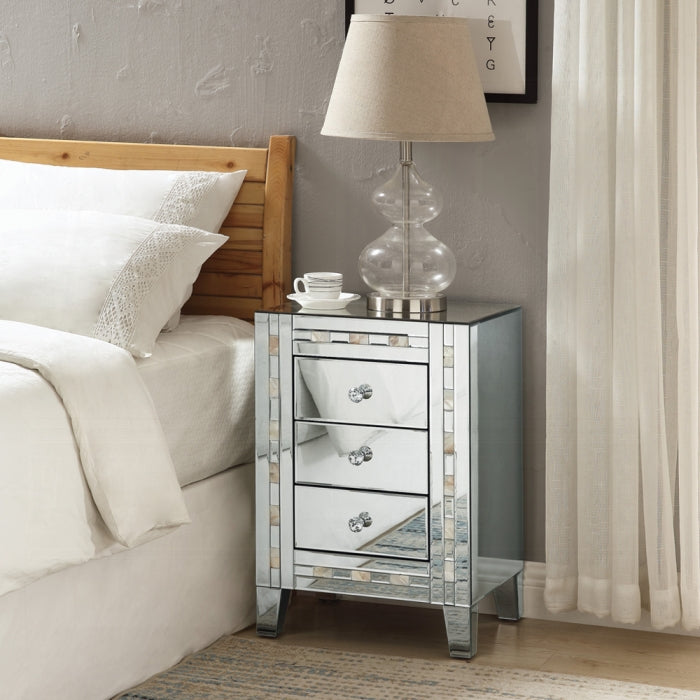 Style and storage abound in the pretty and practical design of the Nasa Accent Table. This versatile piece fits naturally beside a sofa, bed, or entryway, offering three drawers for keeping remotes, magazines, and essentials organized. The combination of mirrored glass panels and mother-of-pearl accents adds a touch of subtle glamour without overpowering your decor.