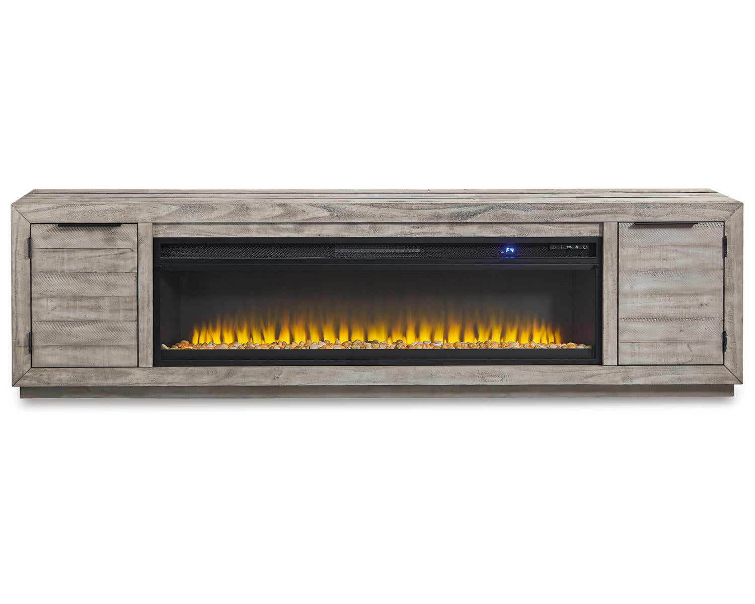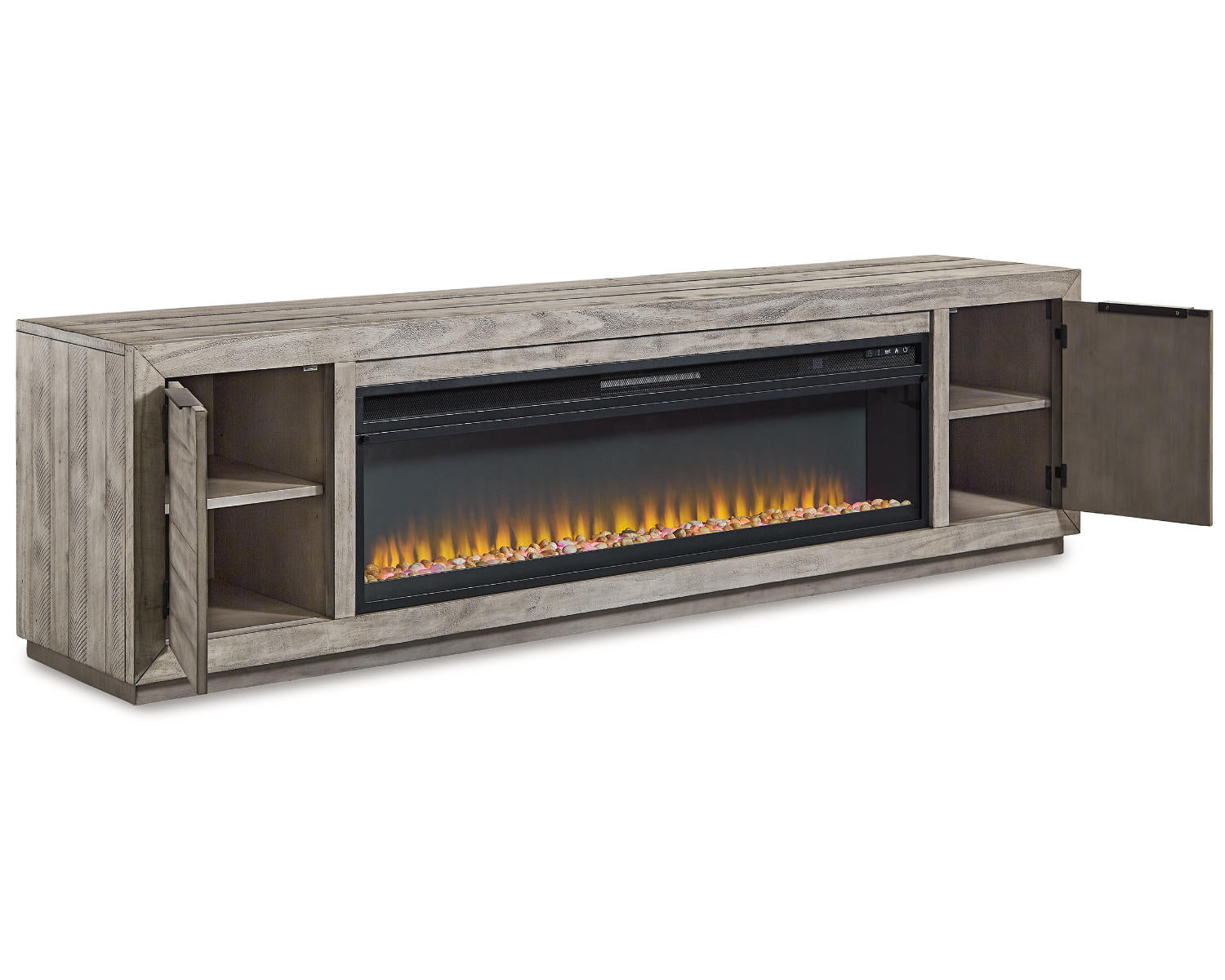 Naydell 92" TV Stand with Electric Fireplace – Gray