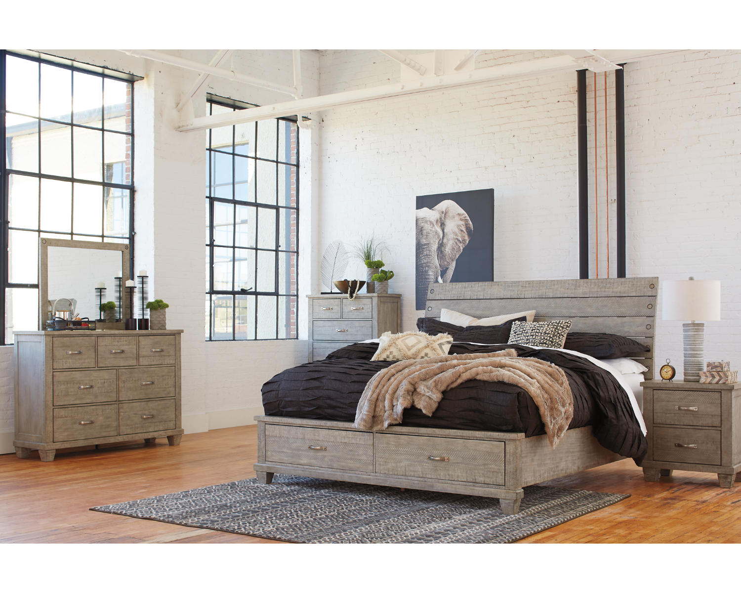 Introducing the Naydell King Panel Bed in a rustic gray finish — a king-size centerpiece that blends timeless panel design with practical storage. This bed is suited for bedrooms that value both style and organization, offering a clean silhouette with built-in functionality. Built for daily use, it pairs a classic look with versatile storage for a neater, more relaxing space.