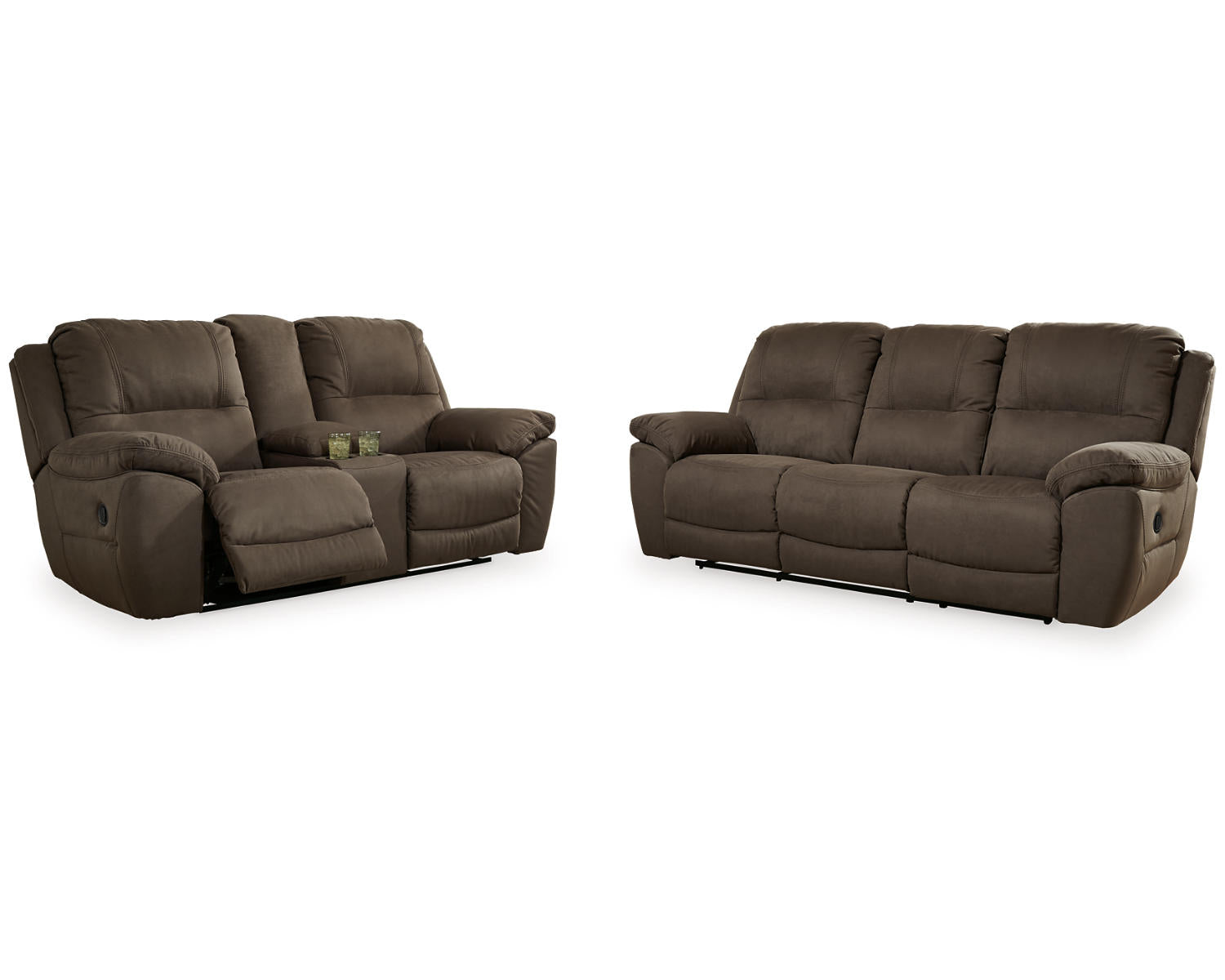 - Two-piece set includes a reclining sofa and a reclining loveseat for flexible seating arrangements.