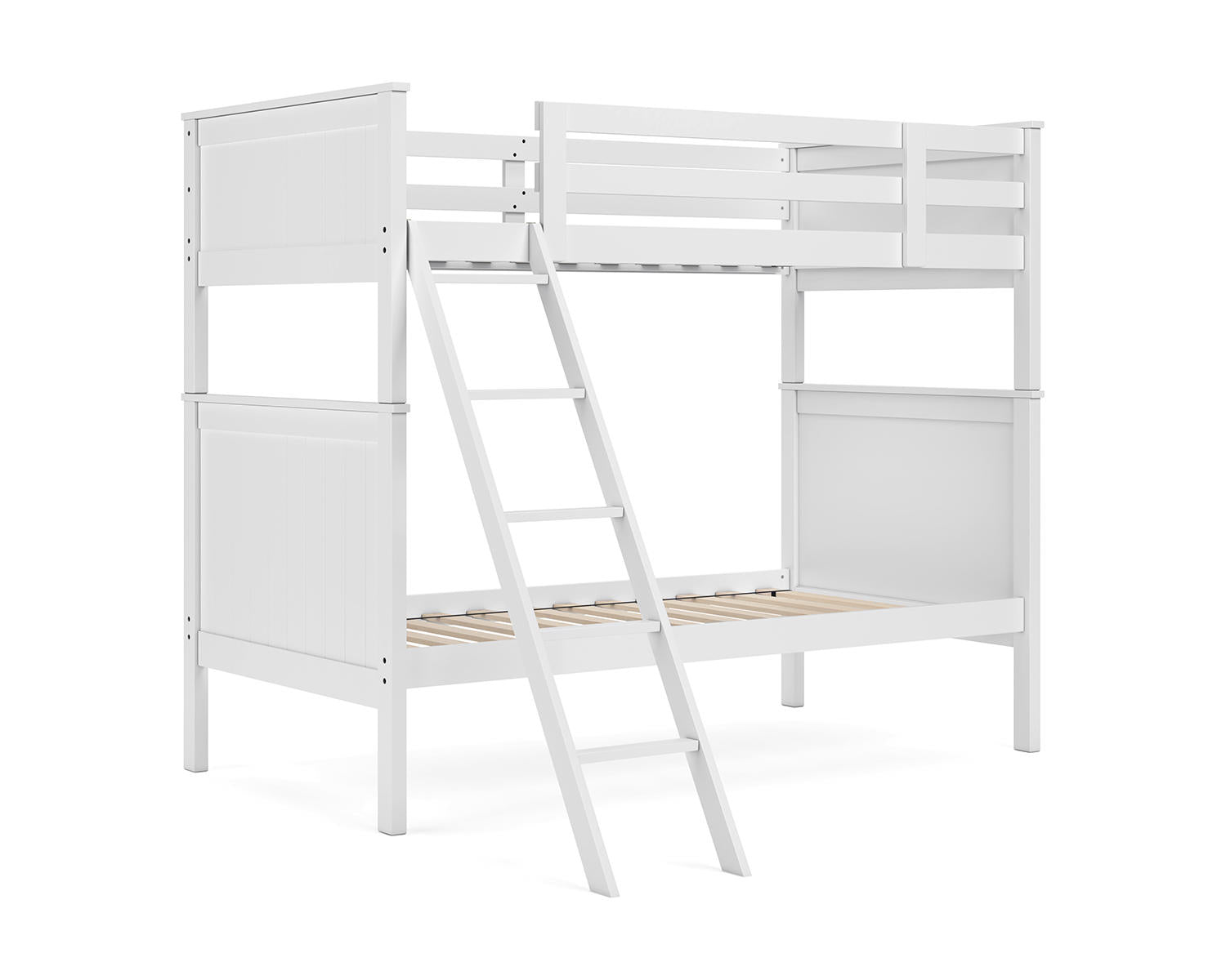 Meet the Nextonfort Twin over Twin Bunk Bed in White — a space-saving solution for shared bedrooms, sleepovers, and growing families. This bunk bed blends practical design with a clean, versatile finish that complements a range of decor styles. Built for daily use, it’s easy to maintain and fits smoothly into modern homes.