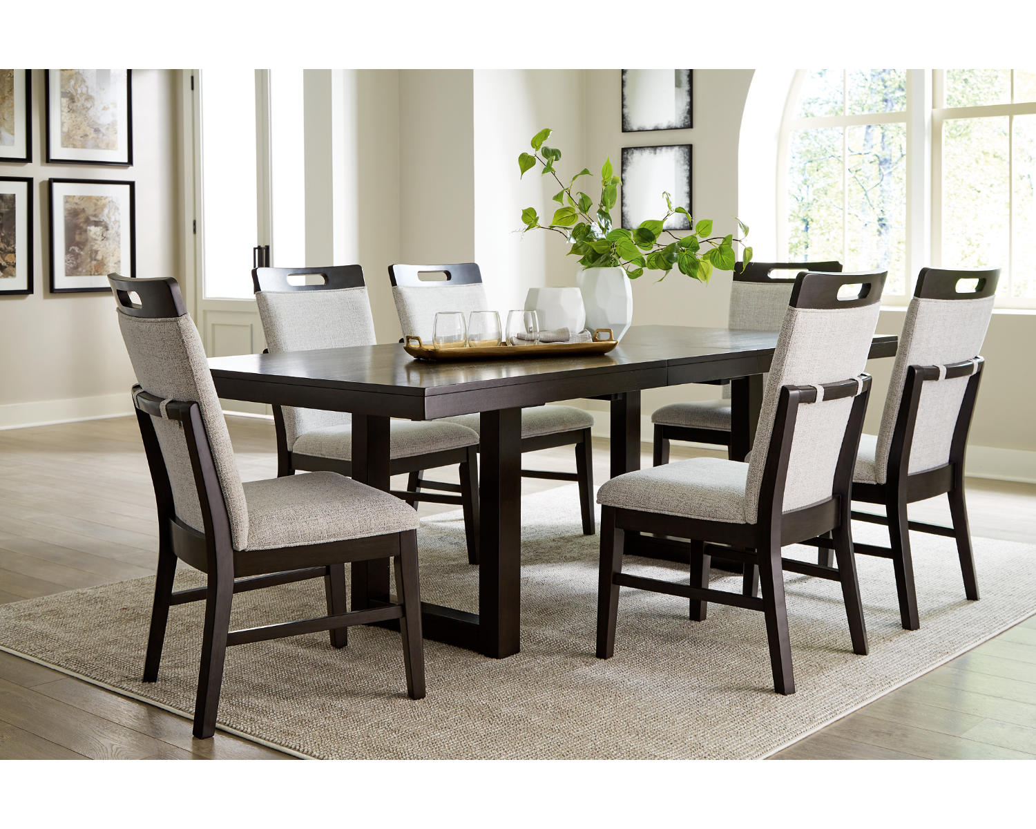 Discover a cohesive dining solution designed for modern homes. The Neymorton set includes a dining table and six chairs in a rich dark grayish brown finish, offering a clean, contemporary look for everyday meals and special gatherings. Perfect for families and entertaining spaces, this 7-piece set blends style with practicality for lasting appeal.