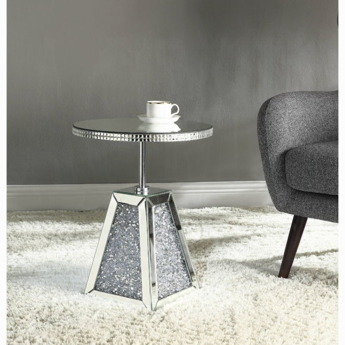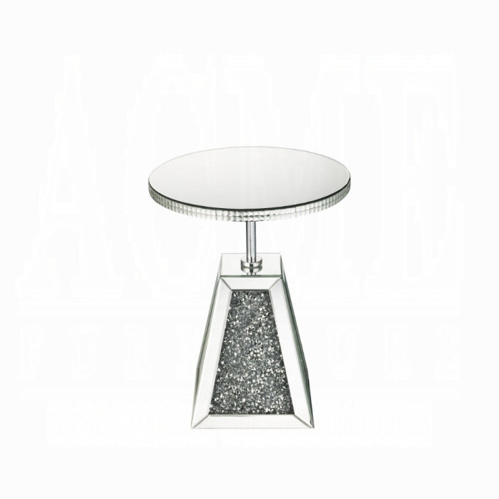 Meet the Noralie accent table, a modern grace piece designed to elevate any living space. This mirrored faux diamond pedestal adds a touch of refined sparkle while keeping a clean, versatile silhouette. Place a lamp or a small plant on its rounded surface—perfect for bedrooms, living rooms, or entryways.