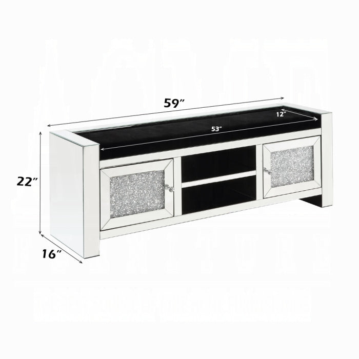 Elevate your entryway, living room, or bedroom with the Noralie Bench W/Storage. Designed for stylish storage and comfortable seating, this two-door storage bench blends a glamorous mirrored finish with practical organization. It’s ideal for anyone seeking a statement piece that also helps declutter with two hidden shelves.
