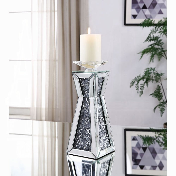 Elevate your space with the Noralie Candle Holder Set. This elegant pair features a beautifully mirrored frame and inlaid faux gems, designed to complement a wide range of decor styles. Available in two sizes, they shine brightest when candles are lit, adding a touch of glamour to tabletops, mantels, or shelves.