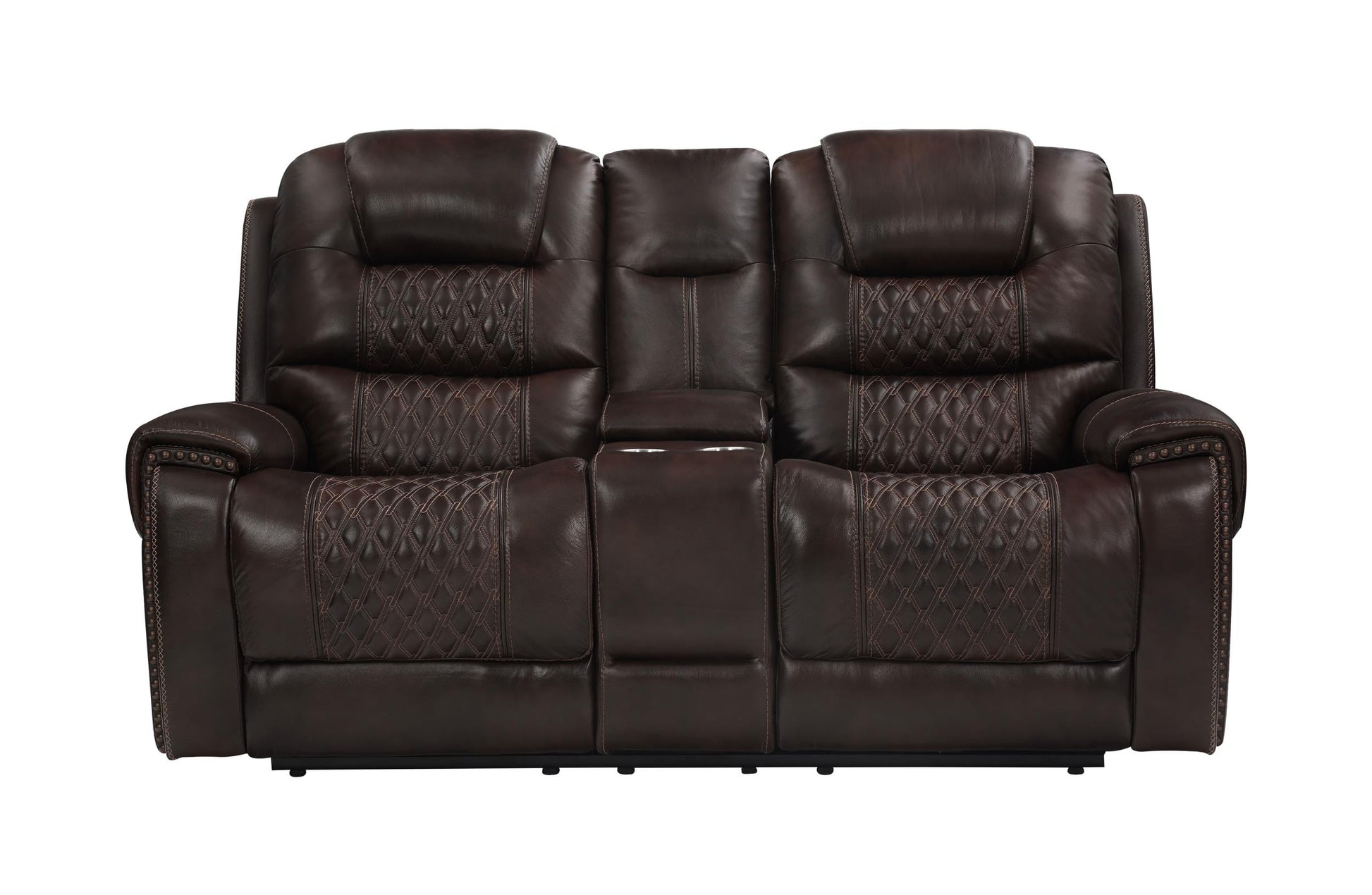 North Cushion Back Power^2 Loveseat with Console Dark Brown