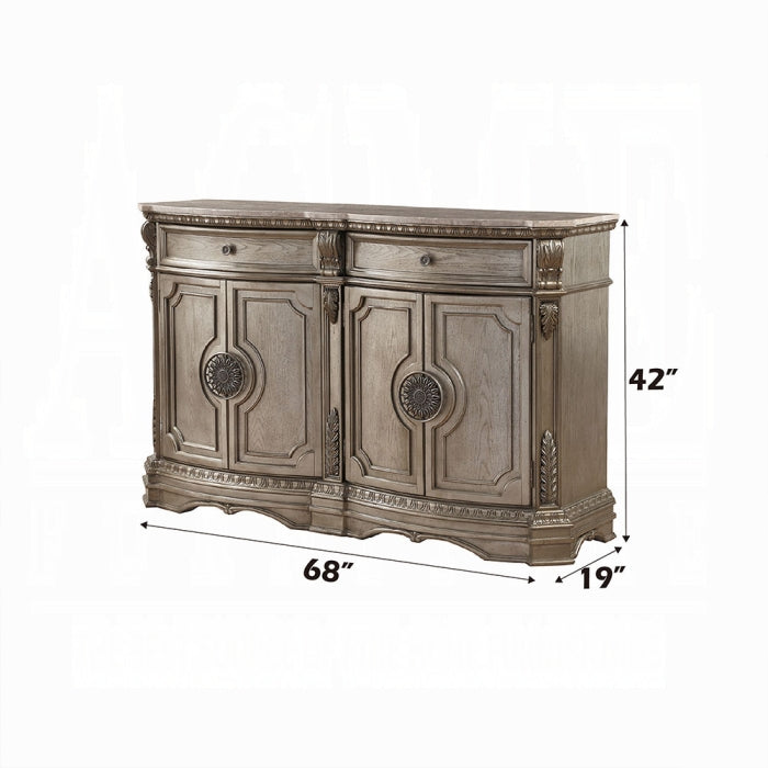 The Northville server is built for durability, featuring a robust wood frame paired with a premium marble top that provides lasting surface quality for daily use and entertaining. The antique silver finish offers versatile styling that works well with traditional, transitional, and contemporary spaces.
