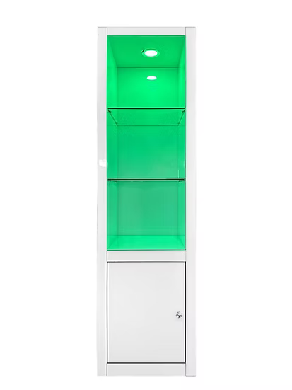 Durability is built into the design, with a reinforced frame and solid shelves that resist sag over time. The powder-coated finish helps resist chips, rust, and wear, maintaining a crisp appearance through daily use. This unit offers strong value with professional-grade storage at a competitive price point, making it an affordable upgrade for organization and display.