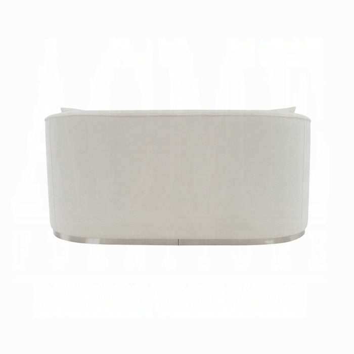 Elegant and inviting, the Odette Loveseat with 2 Pillows is designed for lounging and stylish living spaces. Crafted in beige chenille, it invites you to unwind in luxurious comfort. The distinctive barrel silhouette makes a bold statement while remaining versatile for a range of interiors.