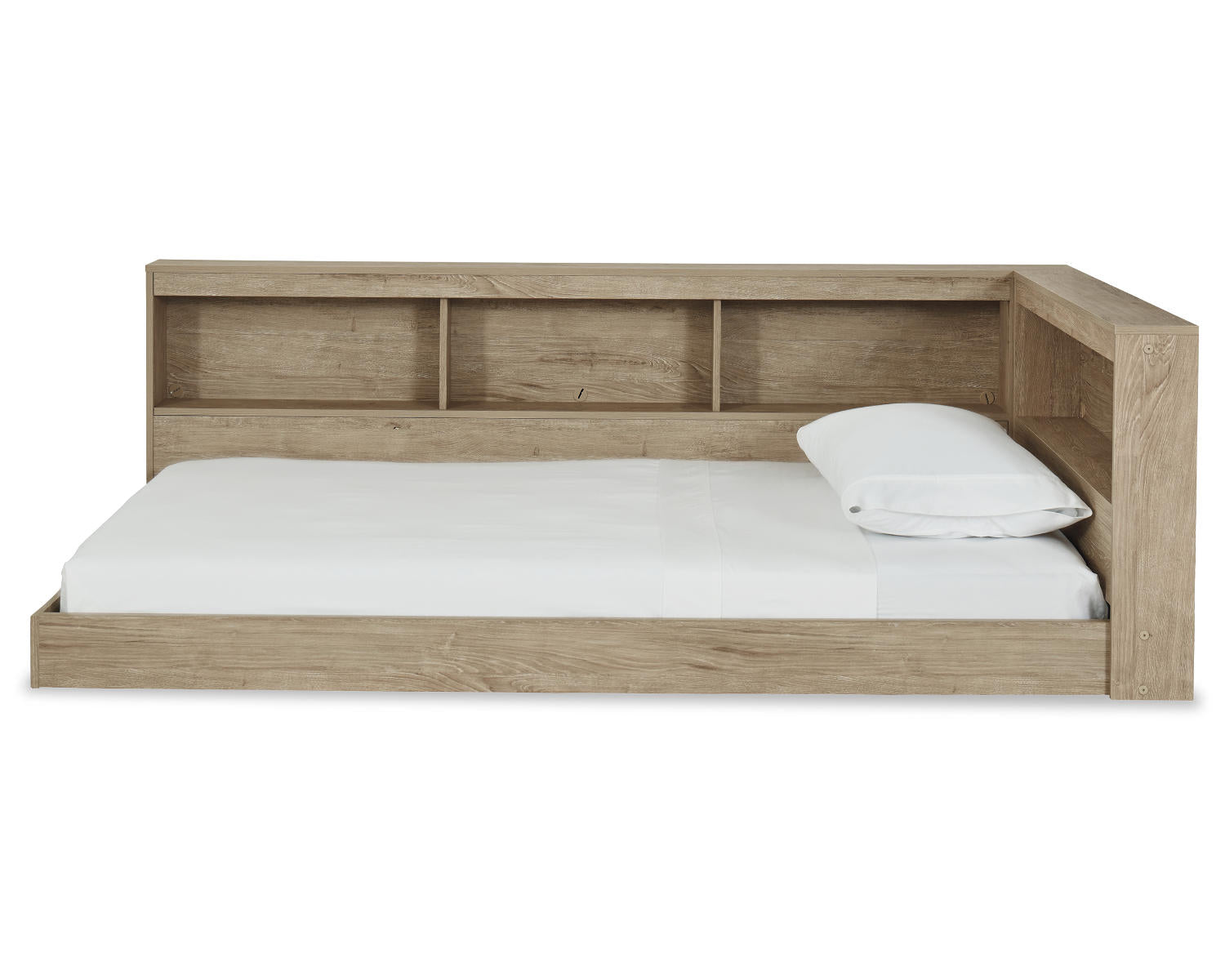 - Storage: Integrated bookcase storage within the headboard for books, devices, and nightly essentials.