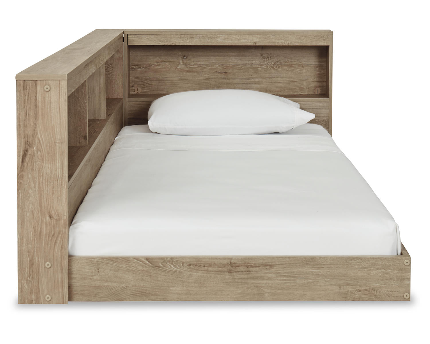 The Oliah Twin Bookcase Storage Bed combines rest with practical storage, making it ideal for compact bedrooms, dorms, and guest spaces. It features a twin-sized bed with built-in bookcase storage to keep essentials within reach. Finished in a natural tone, it delivers a warm, versatile look that complements a variety of decors.
