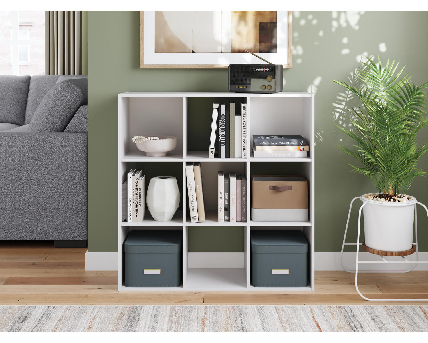 - Nine cube compartments for versatile storage of books, toys, decor, and essentials